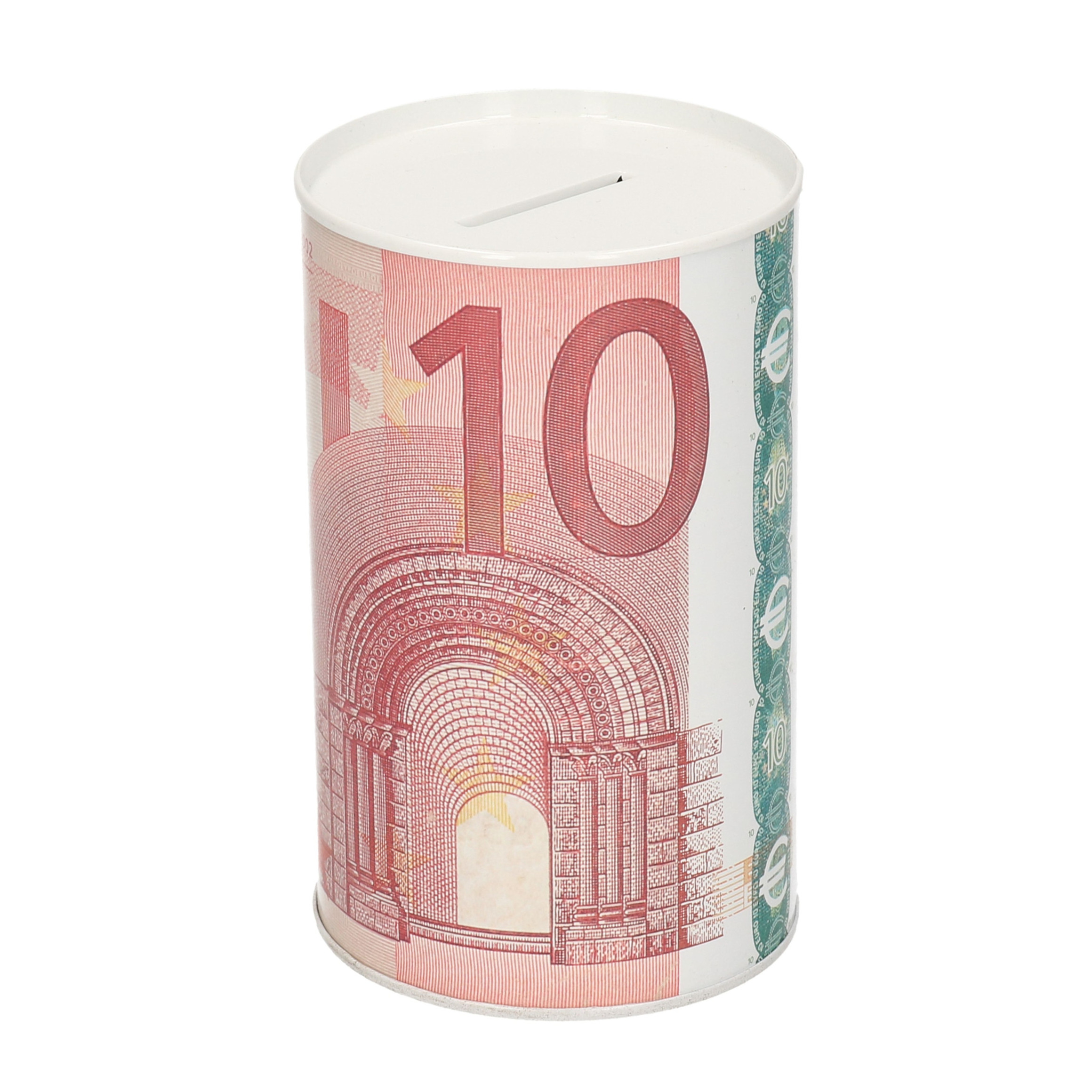 10 euro biljet spaarpot voor kinderen. Deze metalen blikspaarpot heeft een opdruk van een 10 euro biljet. De spaarpot dient u met een blikopener te openen. Afmeting: ca. 8 x 13 cm.