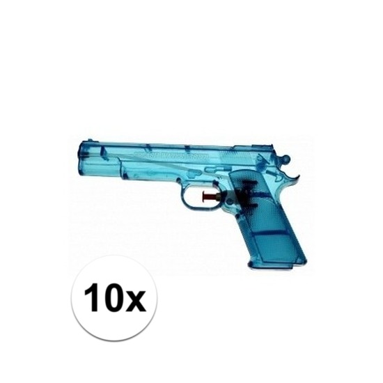 10x stuks transparante blauwe waterpistolen van 20 cm. Doorzichtig waterpistool in het blauw. Dit waterpistool heeft een klassiek model en is ongeveer 20 cm groot.