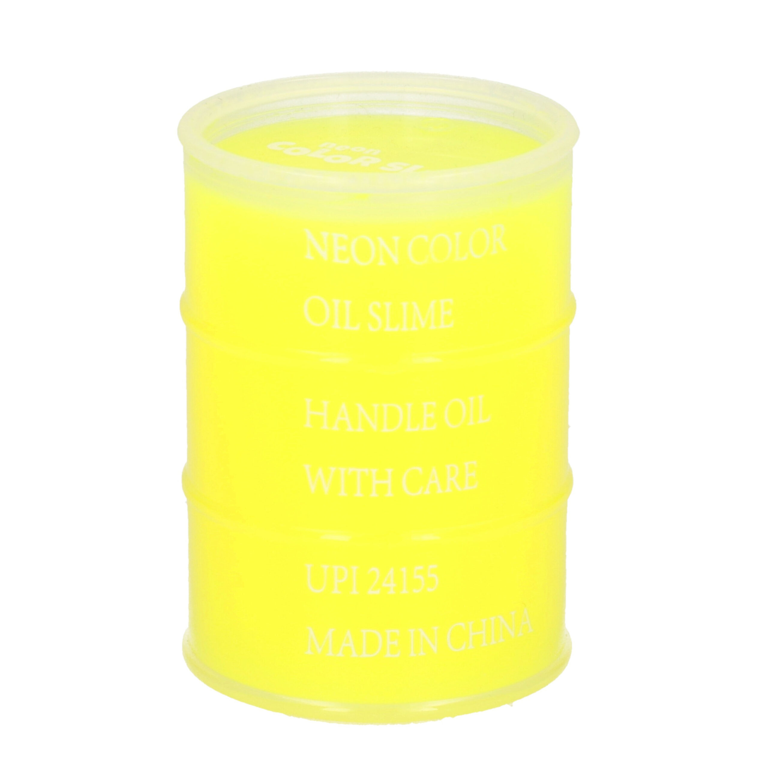1x Potjes speelgoed/hobby slijm geel in olievat 5,5 x 8 cm 150 ml inhoud. Kinderspeelgoed kant-en-klaar slijm/putty in gele kleur. Het slijm is verpakt in een transparant olievaatje/oliedrum potje.