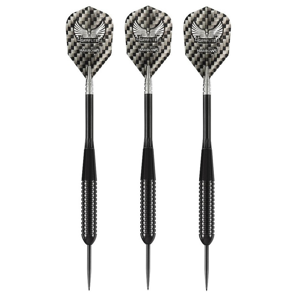 1x Set van 3 dartpijlen Black Arrow 21 grams. 1x set van 3 dartpijlen met een messing (Brass) barrel en voorzien van eboniet, vandaar de zwarte kleur, tevens een PVC shaft, stalen punt en wordt standaard geleverd met Harrows Graflite flights. Een set bevat 3 complete darts in een doosje. Deze hoogwaardige brass darts zijn verkrijgbaar in een brede keuze aan gewichten. U ontvangt 1x sets.