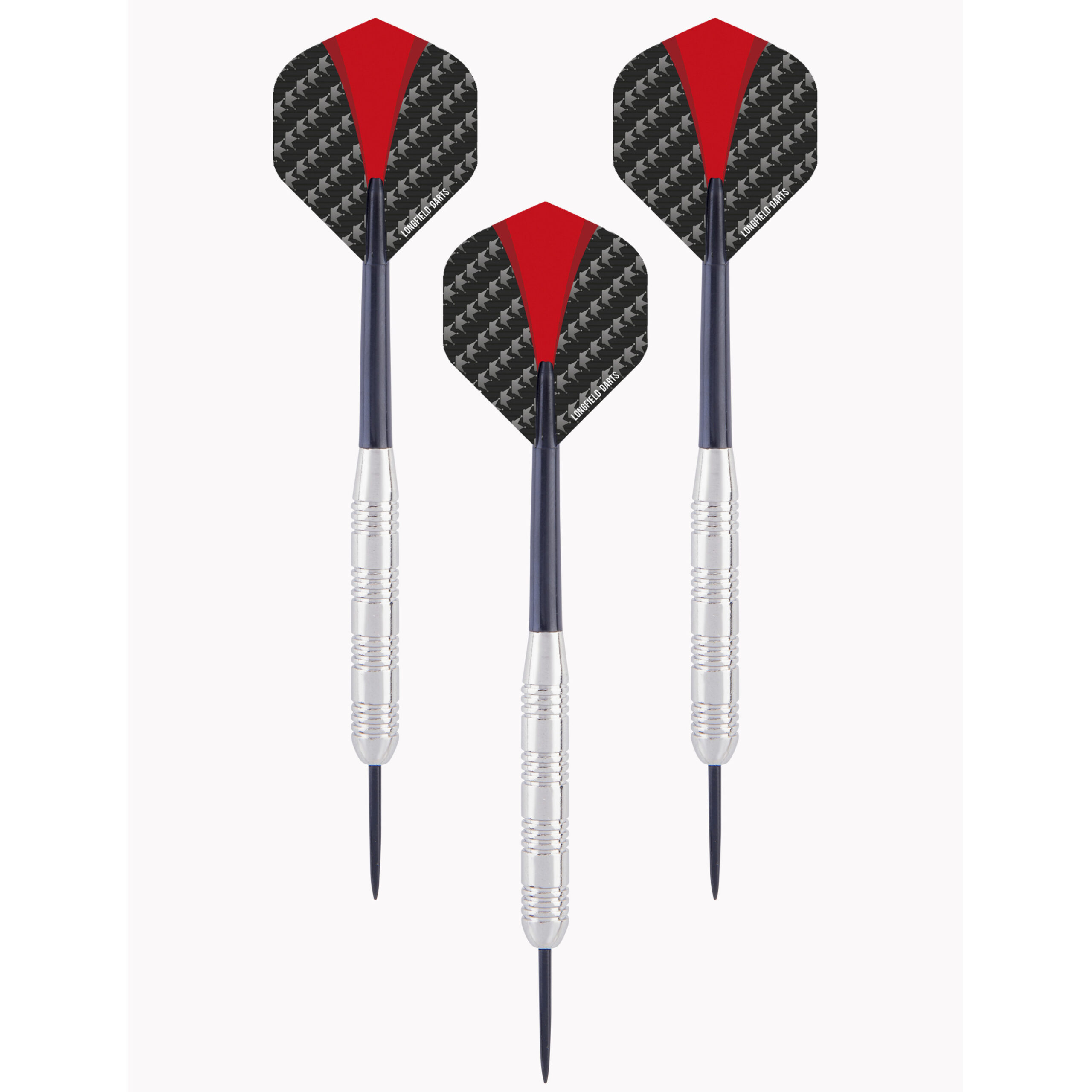 1x Set van 3 dartpijlen Longfield darts nickel silver 24 grams. 1x set van 3 dartpijlen met hoogwaardige nickel silver barrel en een zwarte PVC shaft, stalen punt en wordt standaard geleverd met rood zwarte flights. Een set bevat 3 complete darts geleverd met kunststof etui in blister verpakking met eurolock. U ontvangt 1x sets.