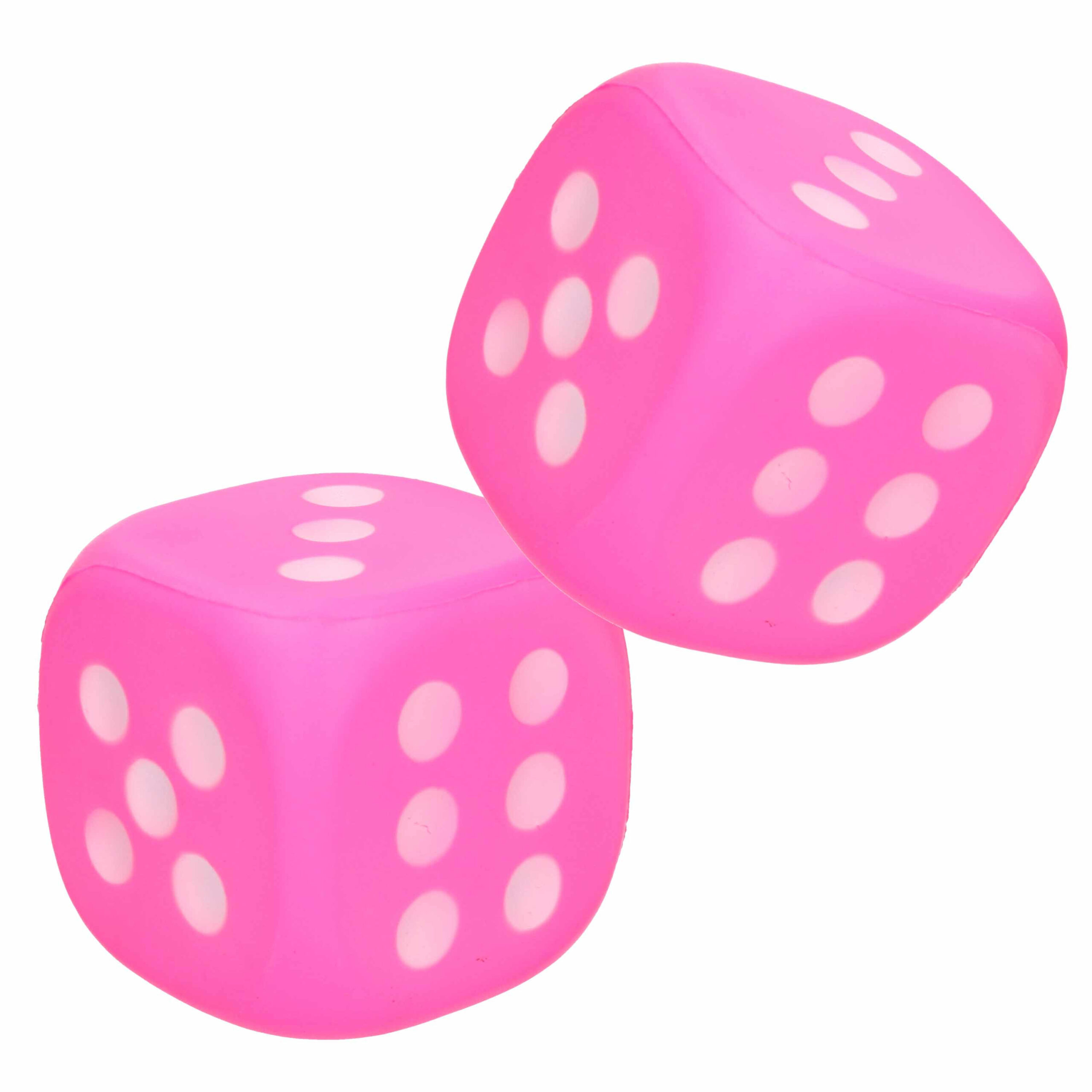 2x Grote foam dobbelsteen/dobbelstenen roze 12 cm. Foam/schuimrubberen dobbelsteen met een formaat van ca. 12 x 12 cm. Aantal stuks: 2x.