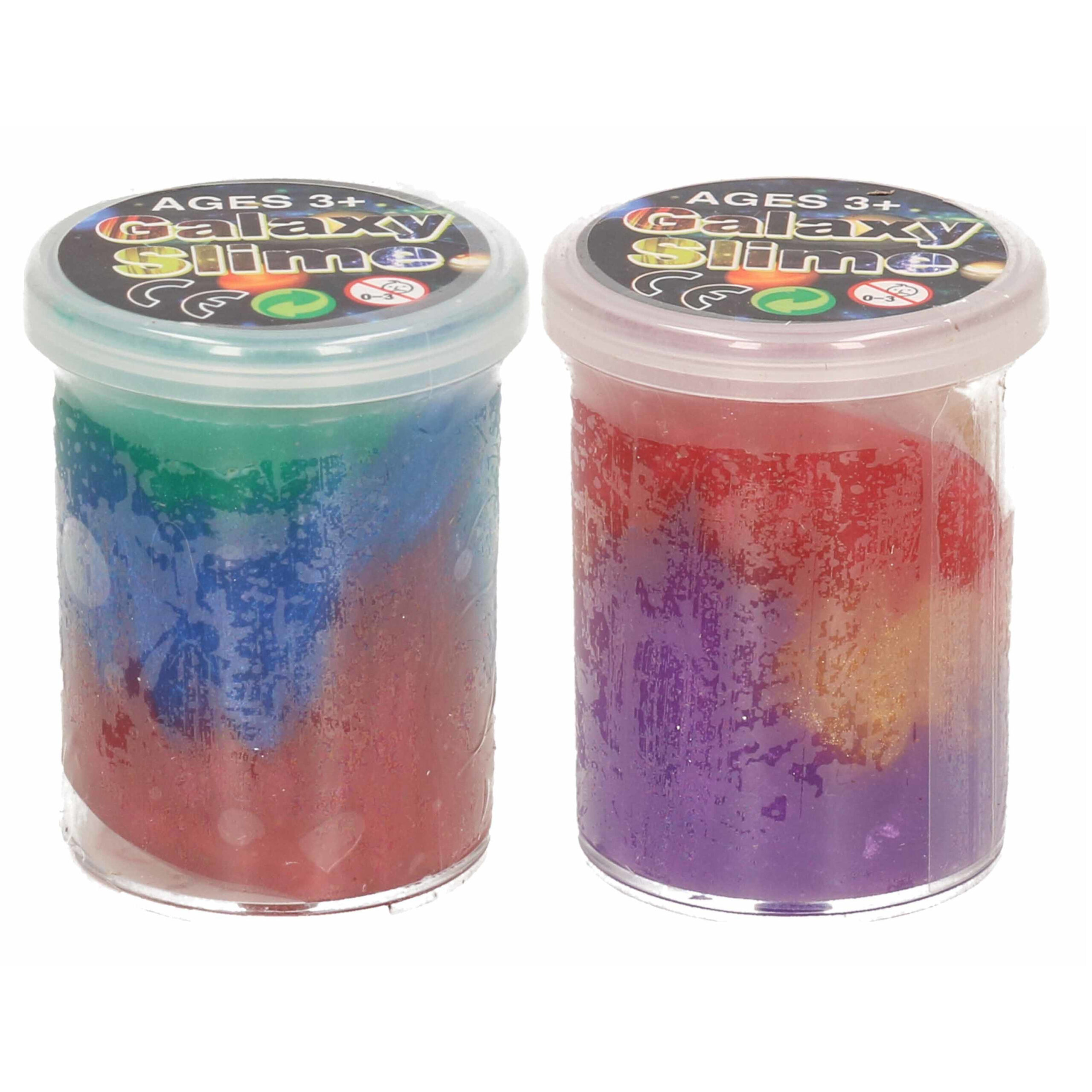 2x Potjes speelgoed/hobby galaxy slijm gekleurd 6 x 4,8 cm 150 ml inhoud. Kinderspeelgoed kant-en-klaar slijm/putty in vrolijke kleuren. Het slijm is verpakt in een transparant potje.