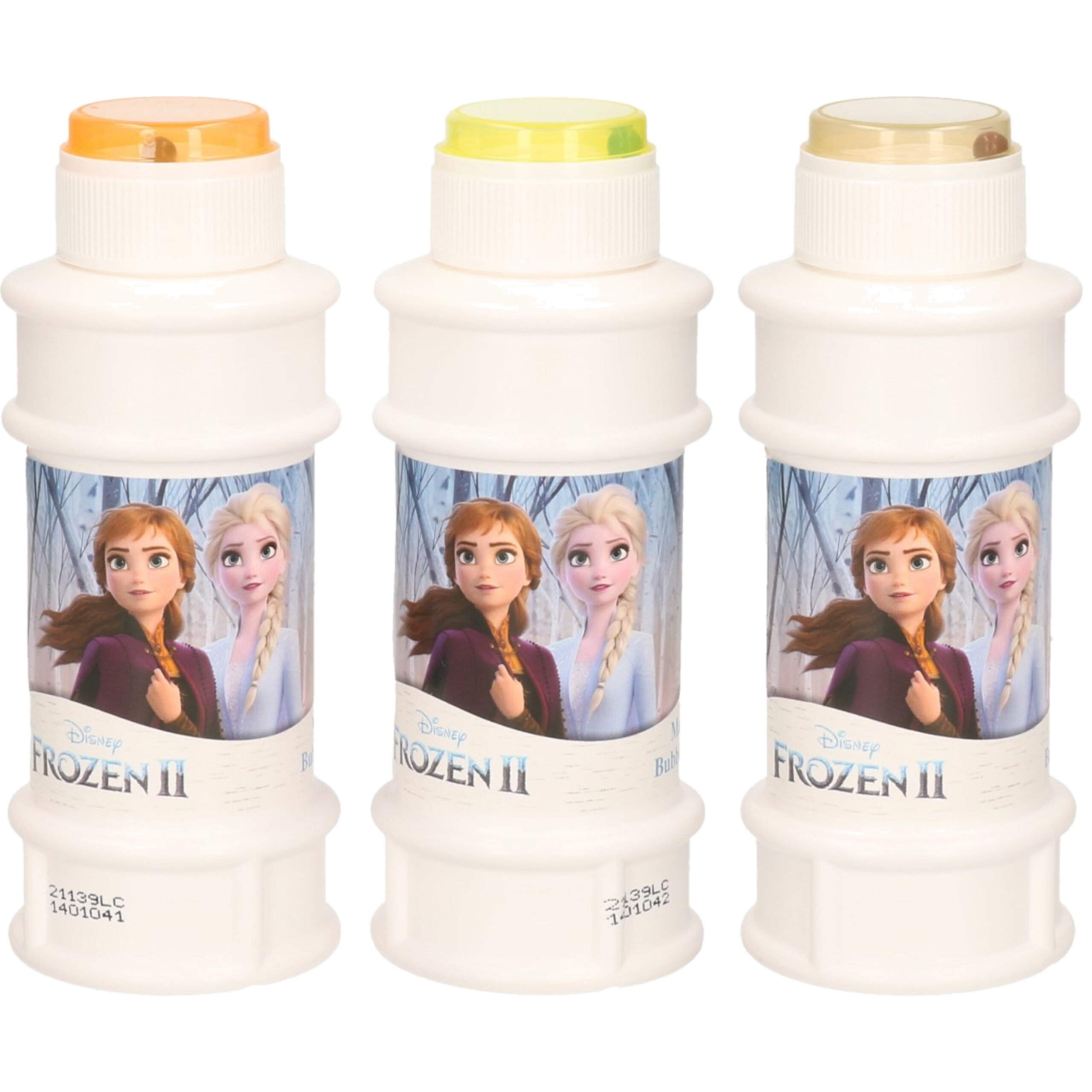 3x Disney Frozen 2 bellenblaas flesjes met spelletje 175 ml voor kinderen. Een bellenblaasflesje met opdruk van Elsa en Anna van Frozen 2, met een bal spelletje in de dop. U ontvangt een willekeurige kleur/opdruk, dit kunnen dezelfde zijn maar ook verschillende. Materiaal flesje: kunststof. Inhoud: ca. 175 ml. Uitdeel/grabbelton speelgoed voor o.a. kinderfeestjes.