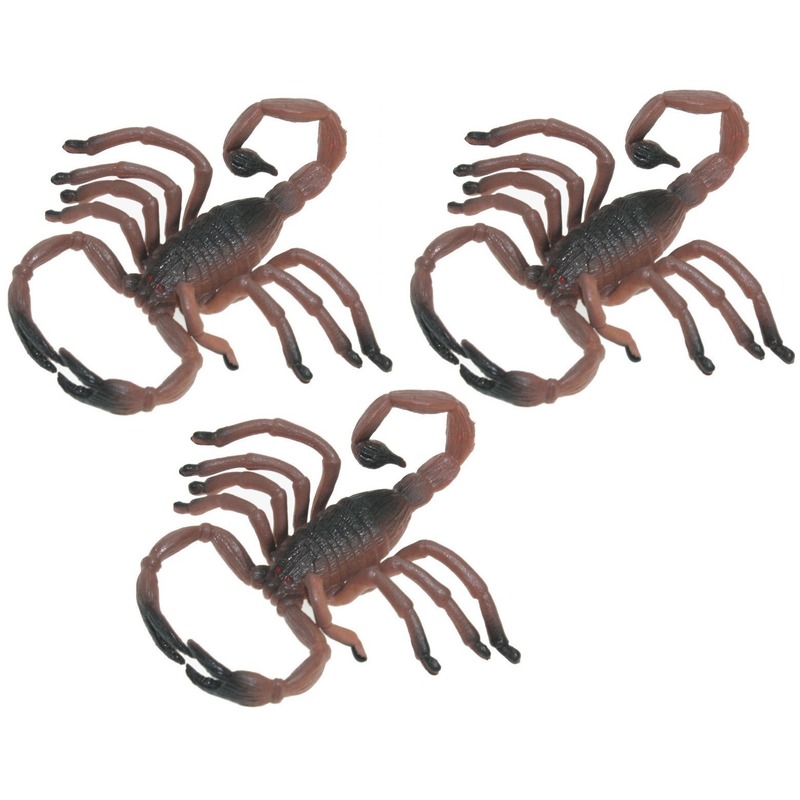 3x stuks plastic schorpioenen 8 cm. Speelgoed schorpioen van plastic. Formaat: ongeveer 8 cm.