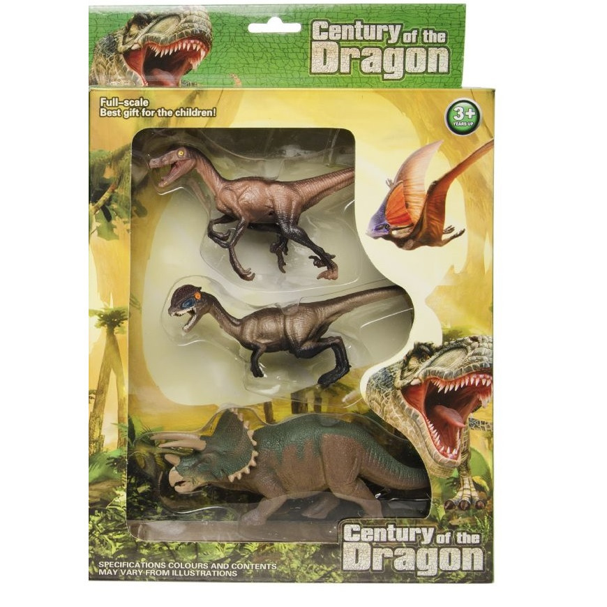 3x Plastic dinosaurussen speelgoed figuren voor kinderen. Bevat 3 verschillende plastic dinosaurussen: een deinonychus, een dilophosaurus en een triceratops. Afmeting verpakking: 28 x 23 x 6 cm. Hoogte dinosaurus: ca. 4,5 cm. Materiaal: plastic/kunststof.