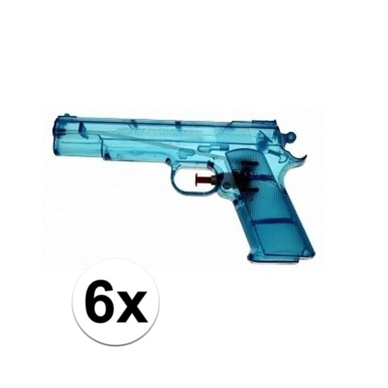 6x stuks transparante blauwe waterpistolen van 20 cm. Doorzichtig waterpistool in het blauw. Dit waterpistool heeft een klassiek model en is ongeveer 20 cm groot.