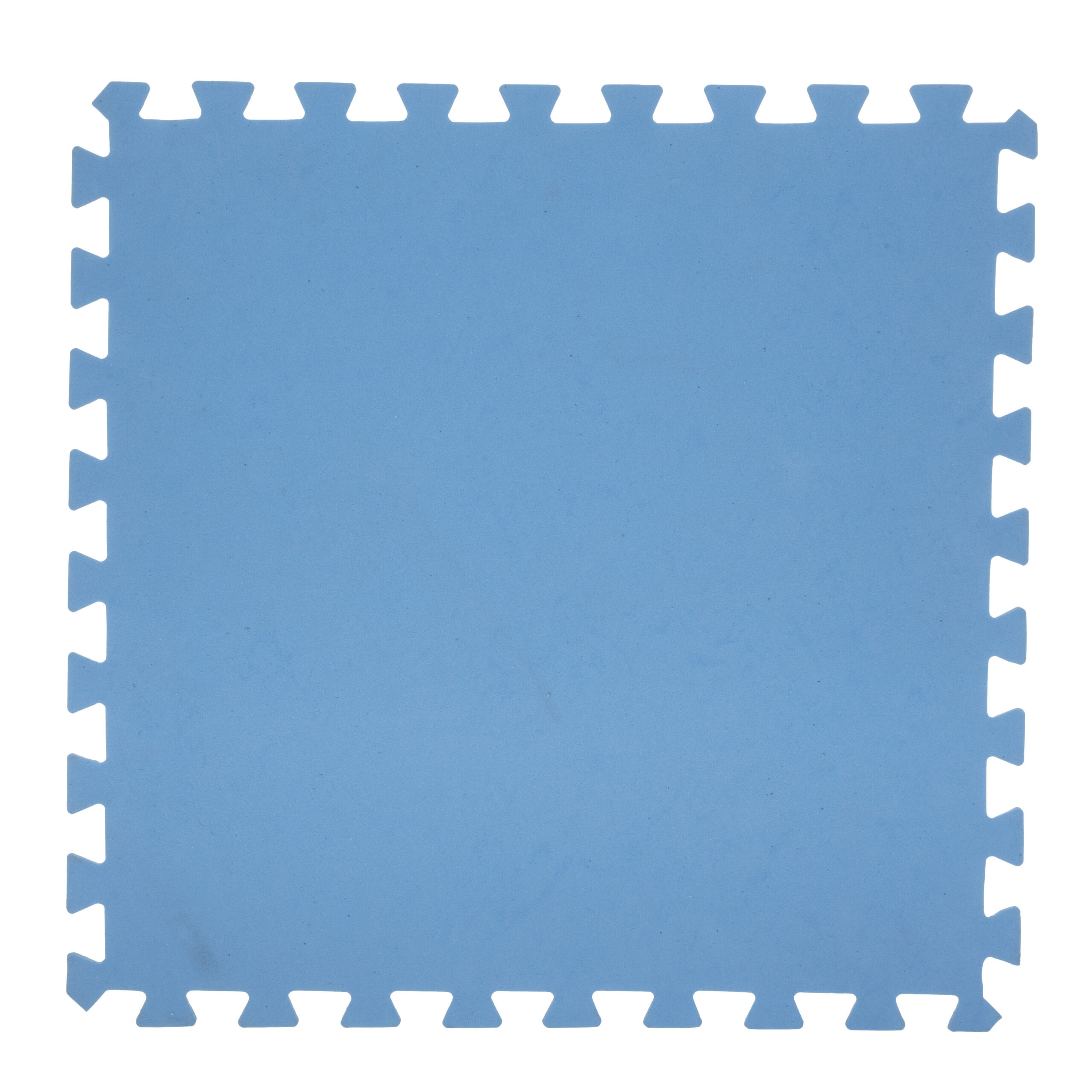 8x stuks Foam puzzelmat zwembadtegels/fitnesstegels blauw. Zachte water look a like foam puzzelmat tegels voor een zachte veilige ondergrond voor bijvoorbeeld zwembaden, om op te sporten of gewoon om lekker op te spelen. Afmeting: 50 x 50 x 0,4 cm. Maak met deze tegels een vlak van maximaal 150 x 150 cm. Geschikt voor binnen en buiten, gemaakt van weerbestendig slijtvast materiaal.