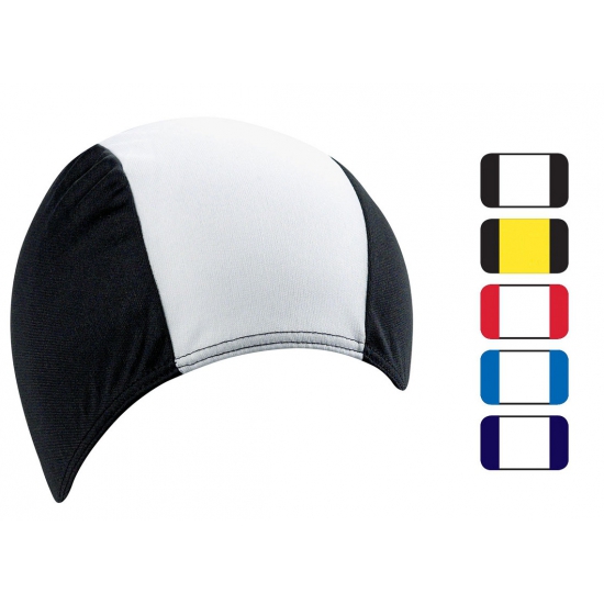 Badmuts voor volwassenen. Deze tweekleurige Beco badmuts is ideaal voor recreatief zwemmen en training. Gemaakt van 100% polyester, biedt de badmuts een comfortabele pasvorm zonder strak te zitten. Doordat het een textiel badmuts is, zorgt hij voor een prettig draaggevoel en is hij eenvoudig op en af te zetten. Let op: deze badmuts is niet waterdicht.