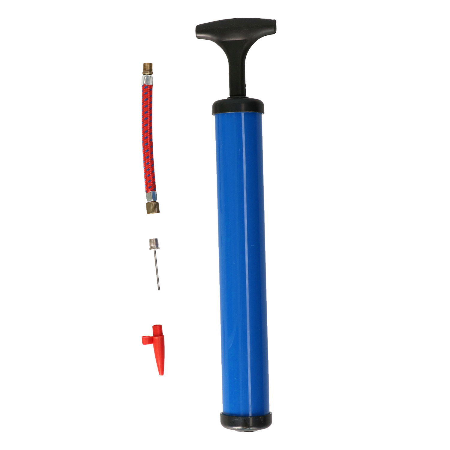 Ballenpomp inclusief naalden in de kleur blauw. Een handig hulpmiddel voor het opblazen van bijvoorbeeld voetballen, basketballen of skippyballen. Makkelijk in gebruik en door het formaat gemakkelijk om mee te nemen op het veld of onderweg. Kom snel weer in actie, of het nu op het voetbalveld of op het basketbalveld is. Universele bal pomp. Materiaal: kunststof. Formaat: 28 cm. Inhoud: 1 ballen pomp/hulpstukken.