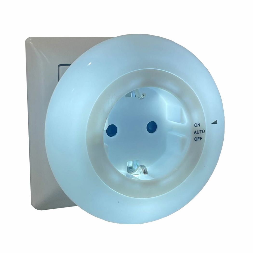 Dit nachtlampje heeft 3 standen, namelijk: *aan*, *uit* en *automatisch*. Bij aan en uit spreekt het voor zich, maar bij automatisch werkt het nachtlampje op een ingebouwde dag-/ nachtsensor, zodat wanneer het donker is, het lampje automatisch begint te branden. Wanneer het licht wordt, gaat het lampje weer uit. Het lampje is ook voorzien van een handige doorvoerstekker, zodat je nog altijd het stopcontact kunt gebruiken.