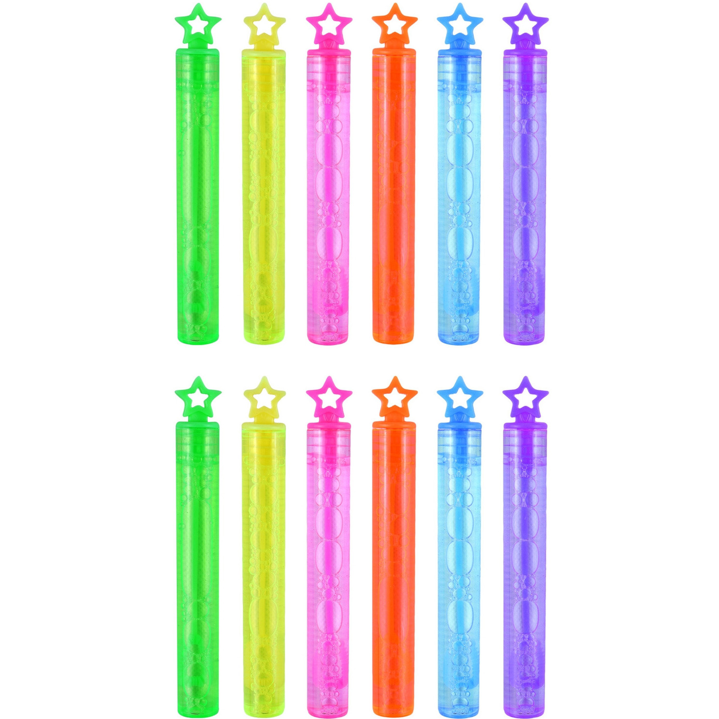 Bellenblaas buisjes set van 12 stuks in neon kleuren met een sterretje op de dop. Een leuk klein item voor een grabbelton of om uit te delen met een kinderfeestje of trakteren op school. Deze kleine bellenblaas flesjes zijn ook leuk om te gebruiken bij een bruiloft! Om in plaats van bloembladjes te gooien, bellen te blazen! De bellenblaas is geschikt voor kinderen en volwassenen. Materiaal flesje: kunststof. Inhoud flesje: ca. 4 ml. Aantal: 12 stuks. Thema: neon/sterretje.