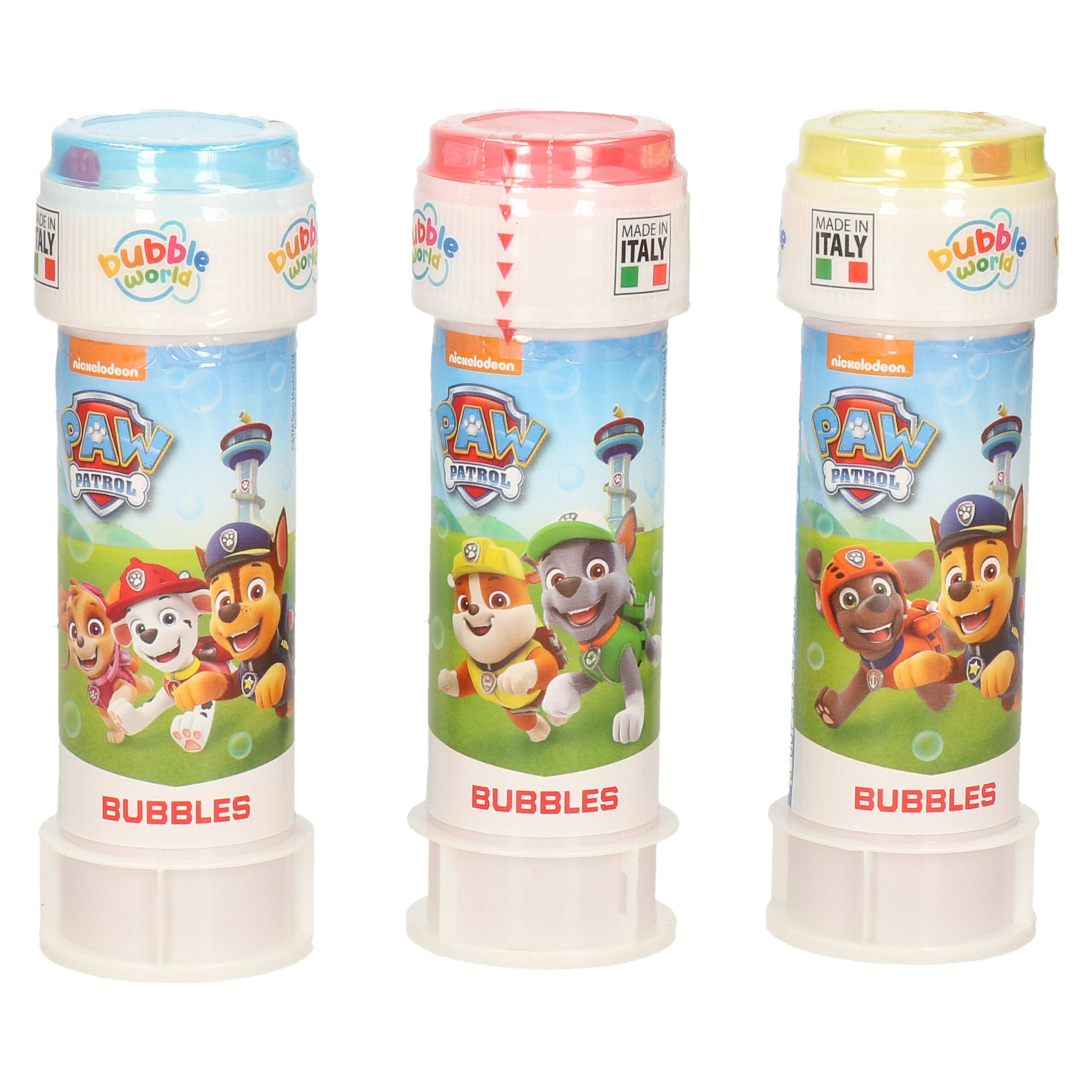 3x bellenblaas met thema Paw Patrol. De bellenblaas heeft een inhoud van 50ml. In de deksel zit een bal spelletje, leuk voor kinderen om met de bellenblaas te spelen en het spelletje in de dop. Een bellenblaasflesje met opdruk van de Paw Patrol. Een leuk item voor een grabbelton of om uit te delen met een kinderfeestje of trakteren op school. Je ontvangt een willekeurige kleur/opdruk, dit kunnen dezelfde zijn maar ook verschillende. Materiaal flesje: kunststof. Inhoud: ca. 50 ml. Thema: Paw Patrol.