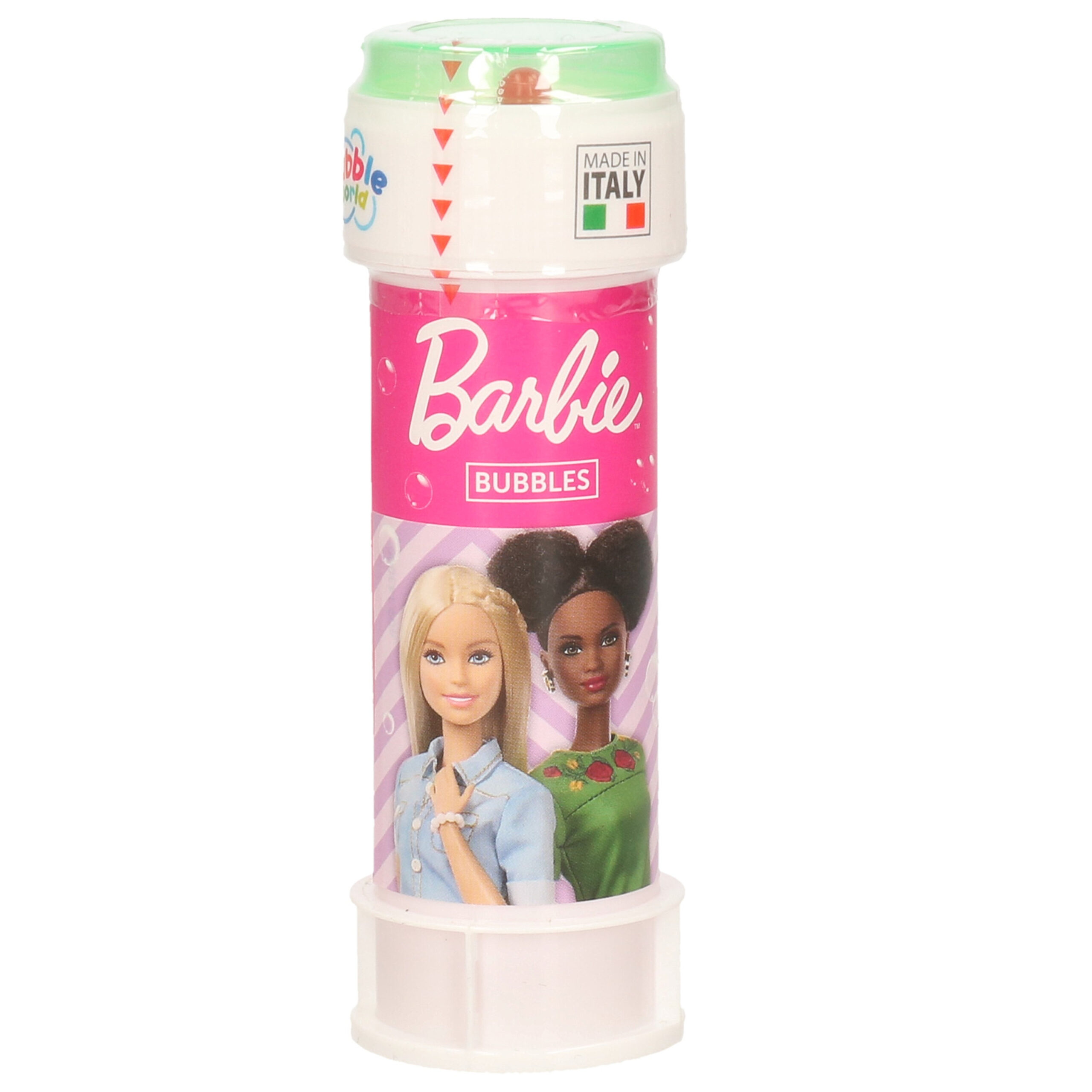 Bellenblaas met thema Barbie. De bellenblaas heeft een inhoud van 50ml. In de deksel zit een bal spelletje, leuk voor kinderen om met de bellenblaas te spelen en het spelletje in de dop. Een bellenblaasflesje met opdruk van Barbie. Een leuk item voor een grabbelton of om uit te delen met een kinderfeestje of trakteren op school. Je ontvangt een willekeurige kleur/opdruk, dit kunnen dezelfde zijn maar ook verschillende. Materiaal flesje: kunststof. Inhoud: ca. 50 ml. Thema: Barbie.