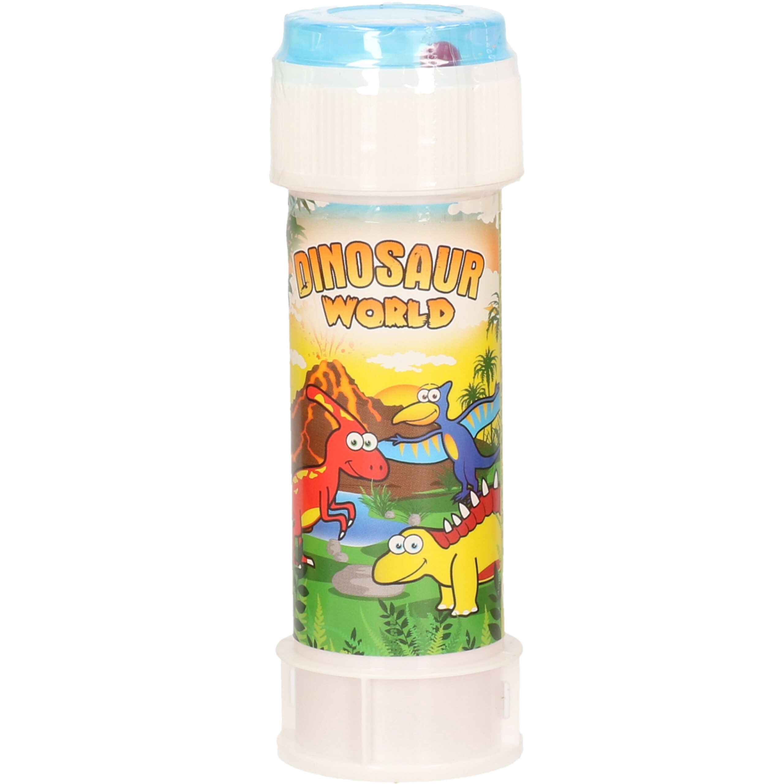 Bellenblaas met thema dinosaurussen. De bellenblaas heeft een inhoud van 50ml. In de deksel zit een bal spelletje, leuk voor kinderen om met de bellenblaas te spelen en het spelletje in de dop. Een bellenblaasflesje met opdruk van de dinosaurussen. Een leuk item voor een grabbelton of om uit te delen met een kinderfeestje of trakteren op school. Je ontvangt een willekeurige kleur/opdruk, dit kunnen dezelfde zijn maar ook verschillende. Materiaal flesje: kunststof. Inhoud: ca. 50 ml. Thema: Dinosaurus/dinosaurussen/dino.