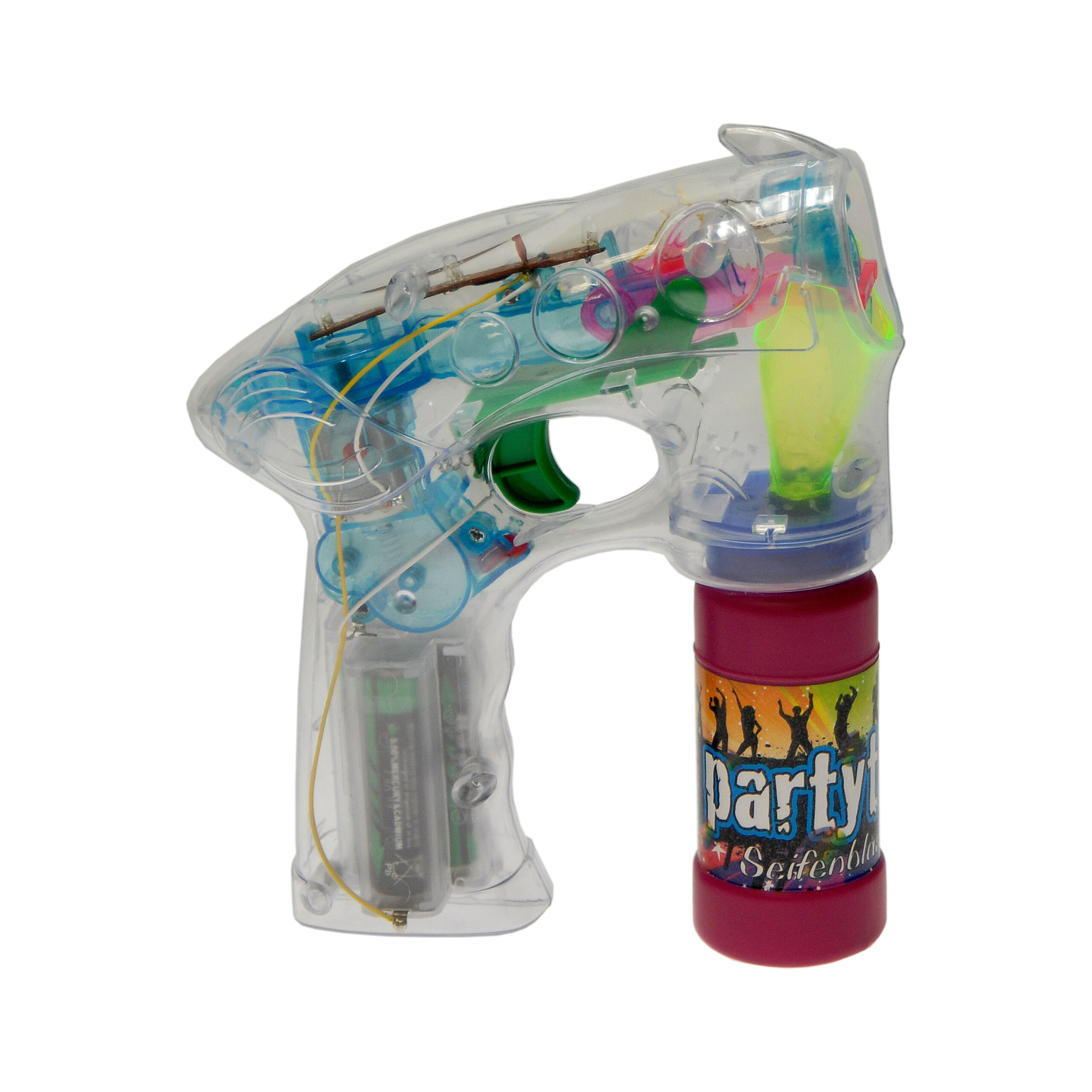 Bellenblaas pistool met LED verlichting. Til ieder feestje naar een hoger niveau met dit feestelijke bellenblaas pistool. Deze leuke bellenblaas in multi kleuren wordt geleverd inclusief 3x AA batterijen en een flesje bellenblaas. 4 LED lichtjes knipperen tijdens het gebruik. Materiaal: kunststof.