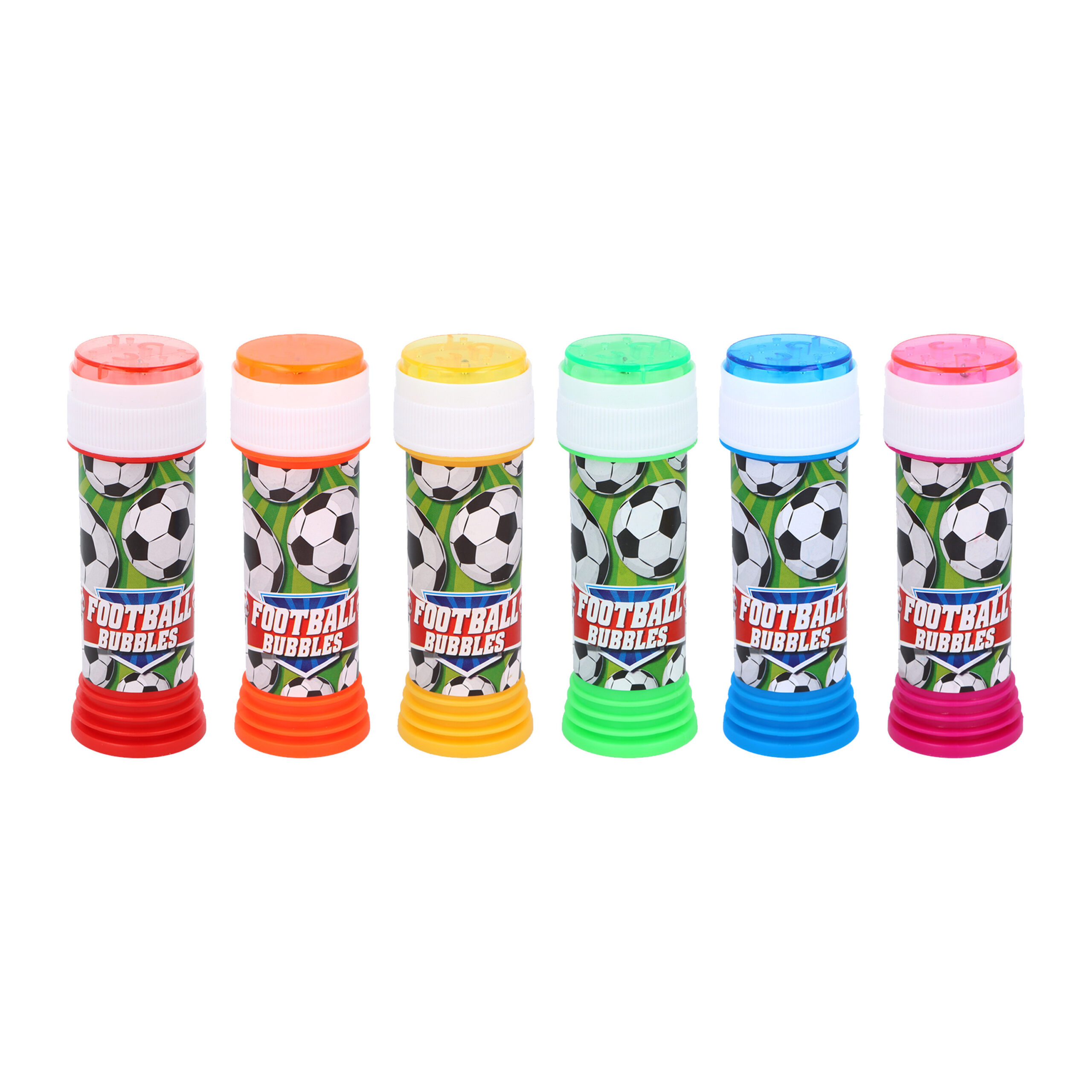 Bellenblaas met thema voetbal. De bellenblaas heeft een inhoud van 50ml. In de deksel zit een bal spelletje, leuk voor kinderen om met de bellenblaas te spelen en het spelletje in de dop. Een bellenblaasflesje met opdruk van voetballen. Een leuk item voor een grabbelton of om uit te delen met een kinderfeestje of trakteren op school. Je ontvangt een willekeurige kleur/opdruk, dit kunnen dezelfde zijn maar ook verschillende. Materiaal flesje: kunststof. Inhoud: ca. 50 ml. Thema: voetbal/voetballen.