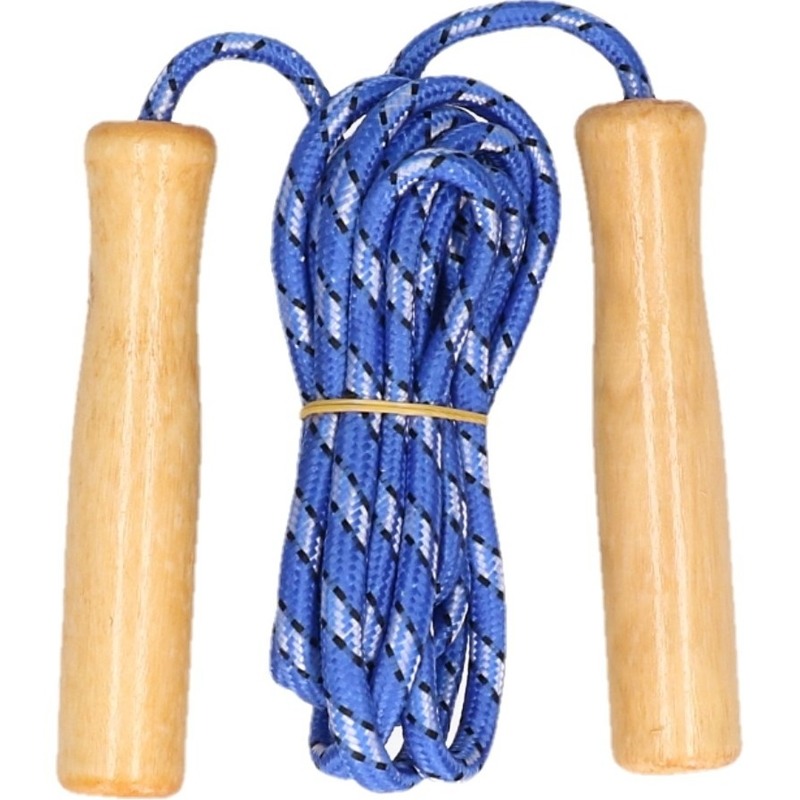 *Blauw springtouw met houten handvatten ? 236 cm*