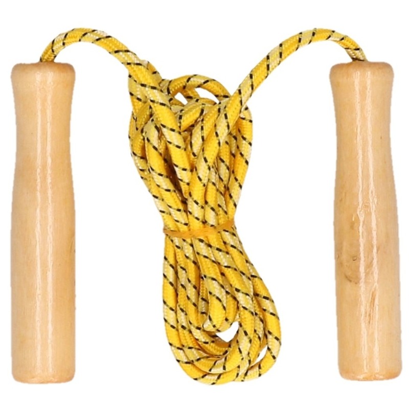 *Geel springtouw met houten handvatten ? 236 cm*