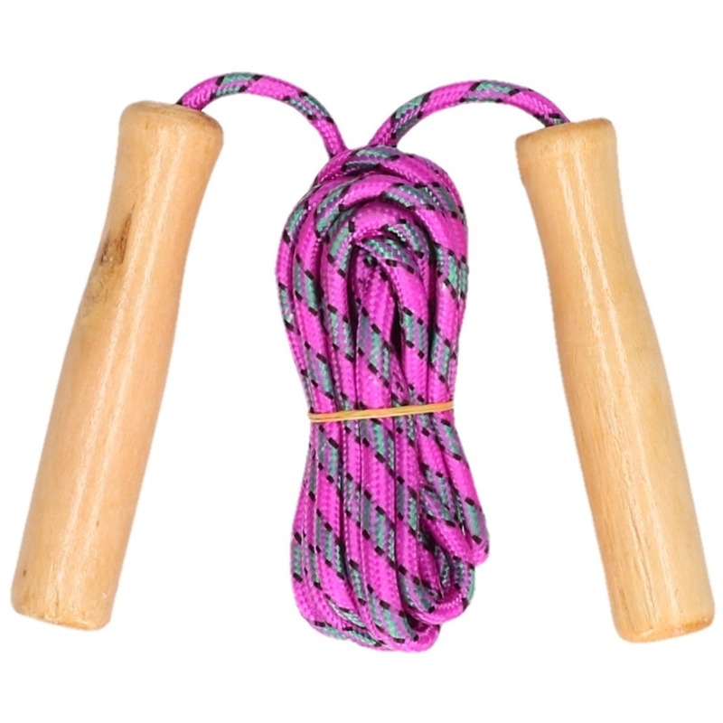 *paars springtouw met houten handvatten ? 236 cm*