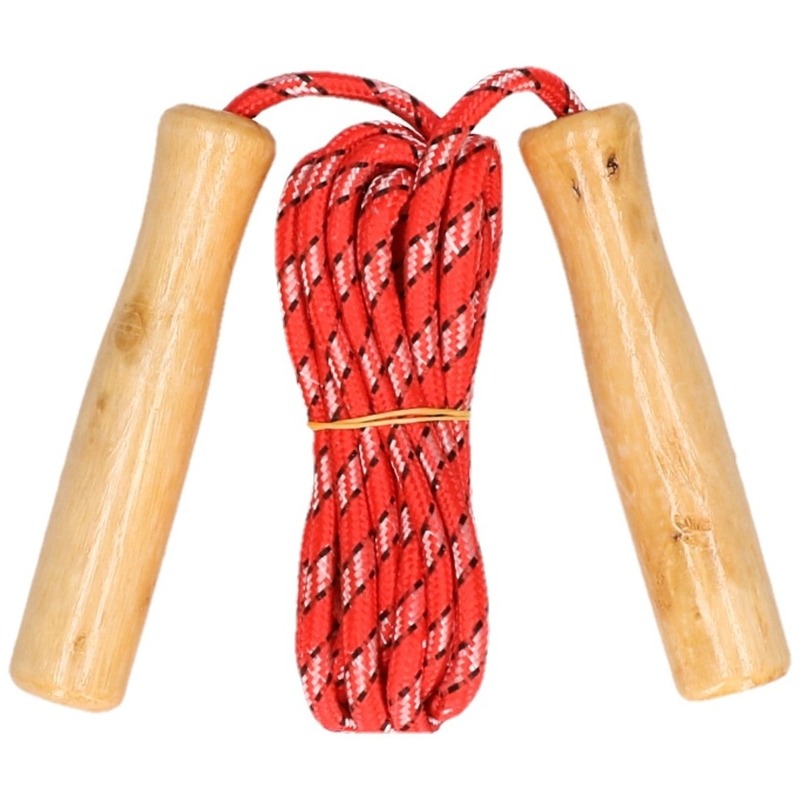 Dit rode springtouw is ideaal voor kinderen, jongens, meisjes en volwassenen die graag buiten actief zijn. Met een totale lengte van 236 cm en houten handvatten biedt het springtouw comfort en grip. De gekleurde streepjes kunnen afwijken van de foto, maar de hoofdkleur blijft rood. Gemaakt van duurzaam polyester en hout, perfect voor buitenspeelgoed en sportief vermaak. Eenvoudig in gebruik en geschikt voor allerlei spring- en speelsessies.