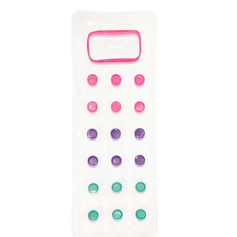 Transparant luchtbed met doorschijnend hoofdkussen. Geniet van ultieme ontspanning op het water met dit stijlvolle transparante luchtbed. Perfect voor in het zwembad, op zee of gewoon om te zonnen op het strand. Het luchtbed is voorzien van vrolijke gekleurde stippen en een comfortabel, transparant hoofdkussen voor extra ondersteuning.