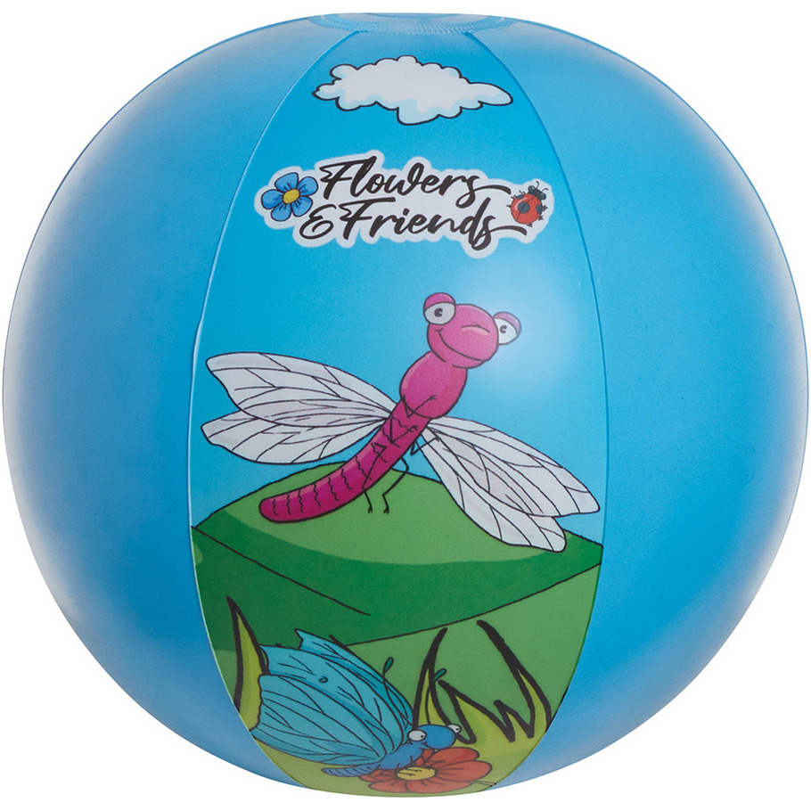 Blauwe/bloemen opblaasbare strandbal 29 cm speelgoed. Opblaas strandbal met opdruk van bloemen, een libelle, een vlinder en een bij. De bal is geschikt om te gebruiken als speelgoed en is geen zwemhulp.