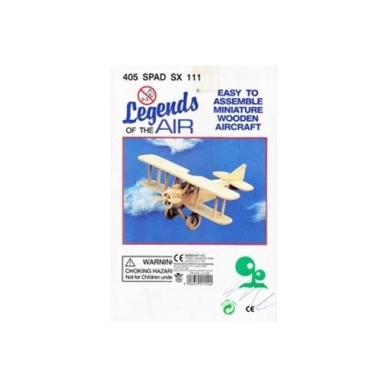 Houten vliegtuig bouwpakket 405 Spad sx 111. 25 delig. Inclusief lijm en schuurpapier. Niet geschikt voor kinderen onder de drie jaar. Formaat gemonteerd: ongeveer 17,5 x 11 cm. Aantal stukjes: 46.