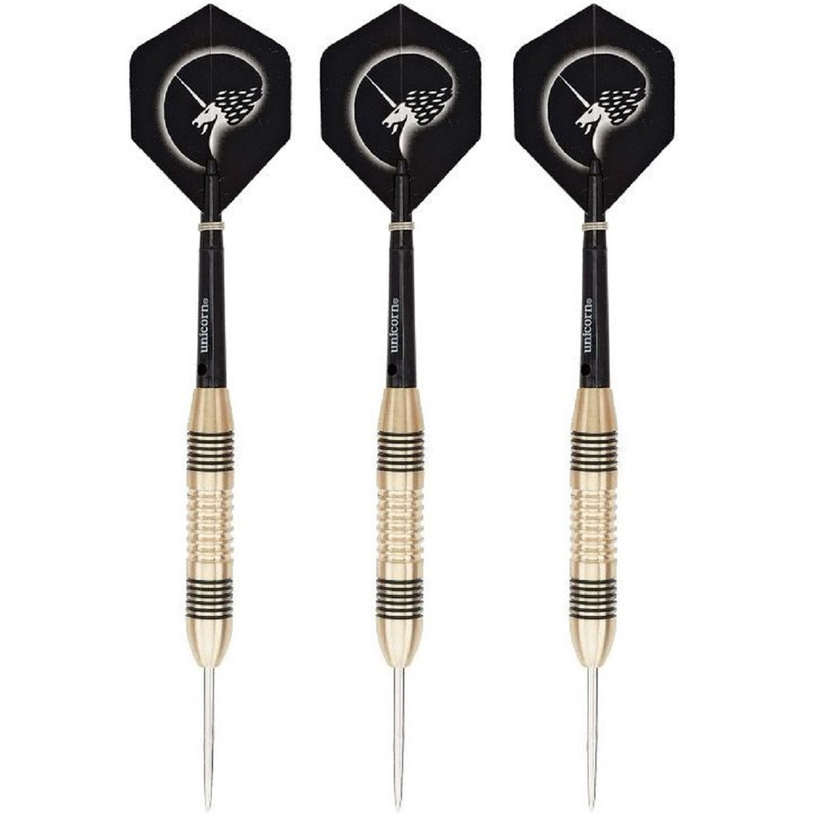Set van 3x dartpijlen Core Brass 21 grams. Dartpijlen met een messing (Brass) barrel, een PVC shaft, stalen punt en wordt standaard geleverd met Unicorn flights. Een set bevat 3x complete darts. Deze 21 grams dartpijl is met name geschikt voor kinderen door zijn lichtgewicht.