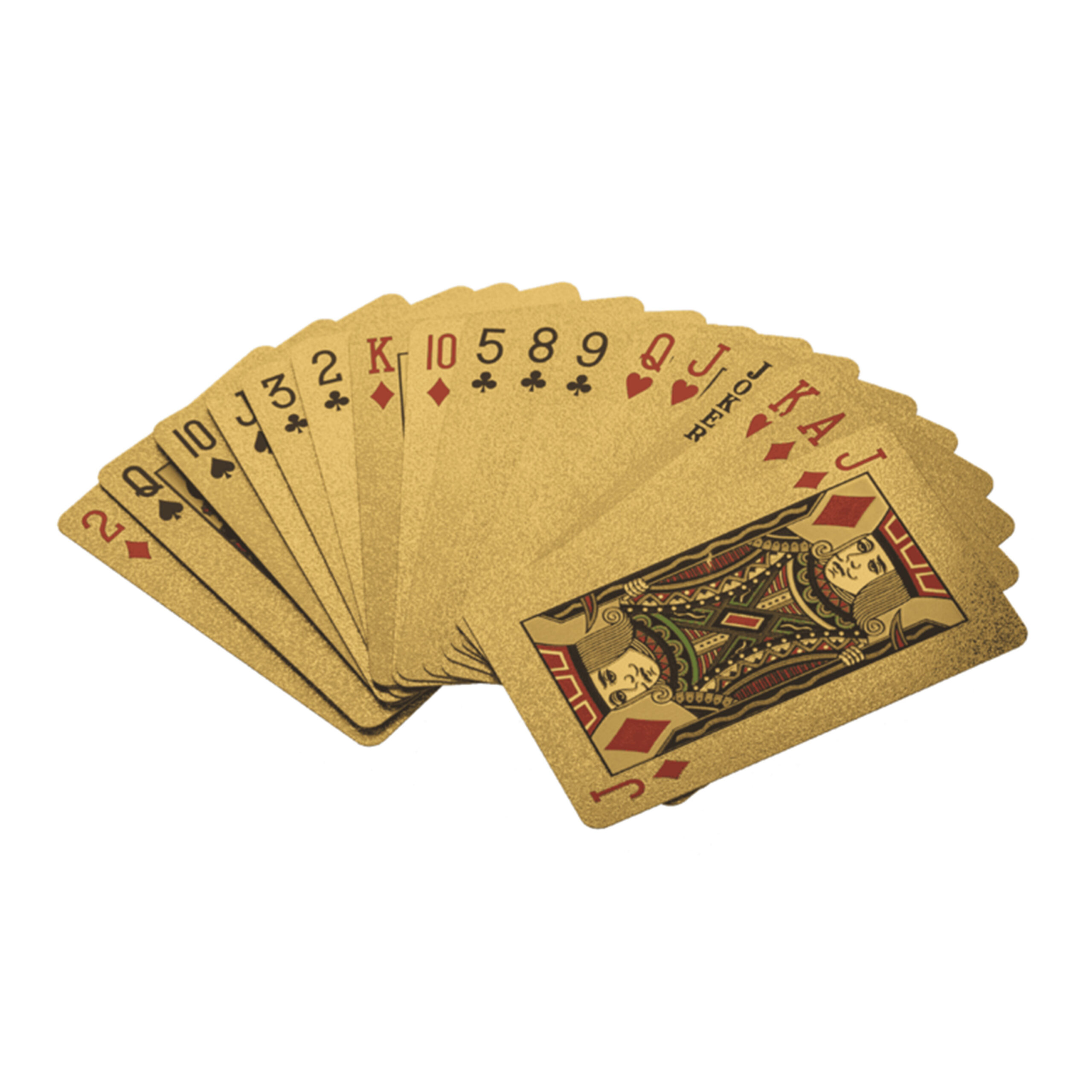 Speelkaarten van Out of the blue. Dit setje speelkaarten is perfect voor een breed scala aan kaartspellen, zoals poker, bridge, pesten, en vele andere. Het doosje bevat 54 kaarten, inclusief twee jokers, allemaal gedrukt op geplastificeerd papier voor een langdurige speelervaring. De kaarten hebben een mooie glans/glitter waardoor de kaarten erg chique ogen. De klassieke en Engelse bedrukking, met grote index voor cijfers en letters, maakt de kaarten gemakkelijk leesbaar, zelfs van een afstand. Of je nu een doorgewinterde kaartspeler bent of gewoon een gezellige spelavond met vrienden wilt organiseren, deze speelkaarten zijn een must-have voor je collectie. Deze kaarten zijn in de kleur goud.
