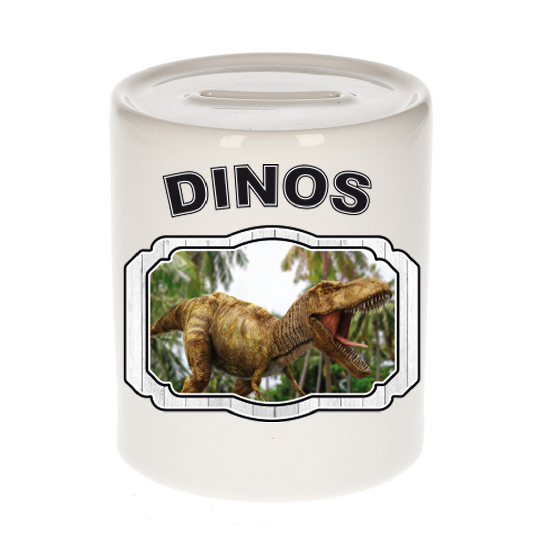 Dieren brullende t-rex dinosaurus spaarpot – dinosaurs spaarpot jongens en meisjes 9 cm. Deze witte spaarpot is tweezijdig bedrukt met een dinosaurussen afbeelding en de tekst: dinosaurs. Een musthave voor een echte dieren/ dinosaurussen liefhebber of iemand die alles van dinosaurussen spaart. Erg leuk om cadeau te doen aan een echte dinosaurussen fan!