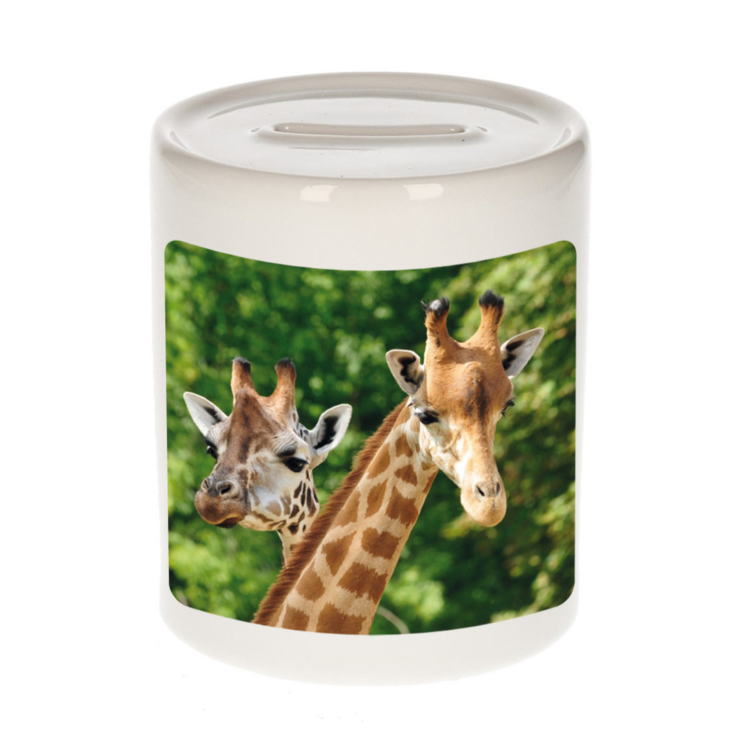 Dieren foto spaarpot giraffe wit 9 cm. Deze spaarpot is aan twee kanten bedrukt met een mooie giraffe foto. Een musthave voor een echte dieren/ giraffen liefhebber of iemand die alles van giraffen spaart. Erg leuk om cadeau te doen aan een echte giraffen fan!