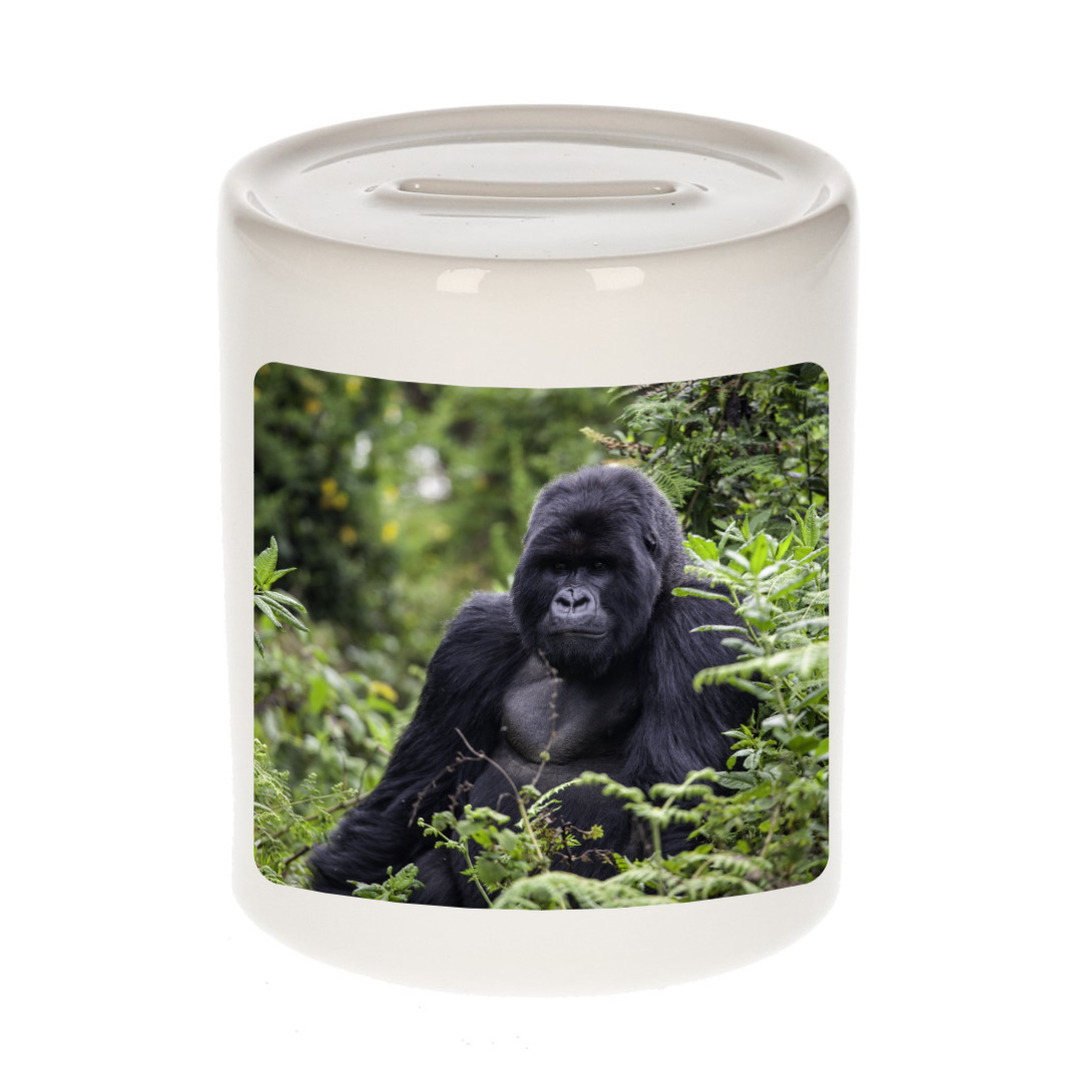 Dieren foto spaarpot gorilla wit 9 cm. Deze spaarpot is aan twee kanten bedrukt met een mooie gorilla foto. Een musthave voor een echte dieren/ gorilla apen liefhebber of iemand die alles van gorilla apen spaart. Erg leuk om cadeau te doen aan een echte gorilla apen fan!