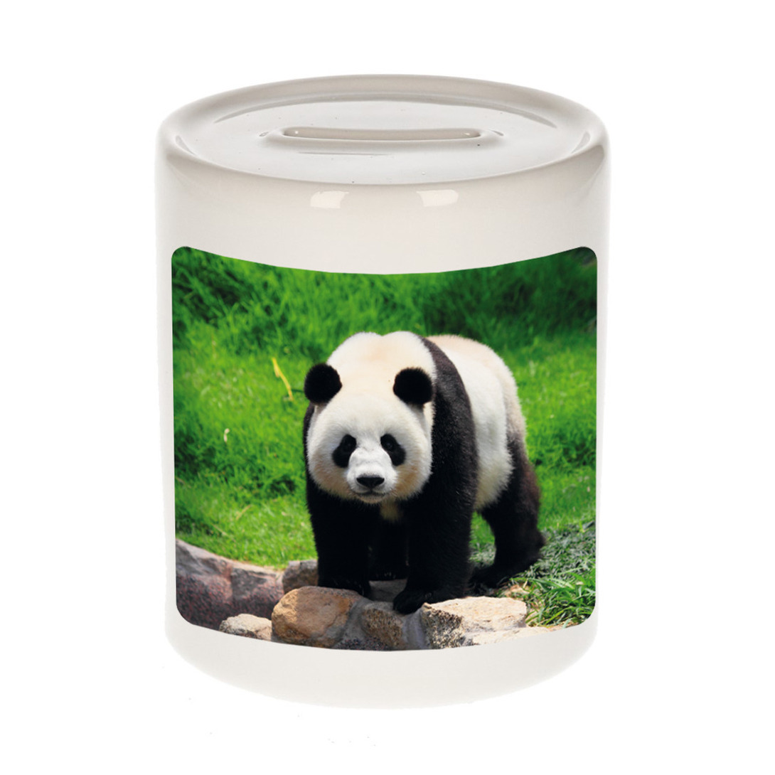Dieren foto spaarpot grote panda wit 9 cm. Deze spaarpot is aan twee kanten bedrukt met een mooie grote panda foto. Een musthave voor een echte dieren/ pandaberen liefhebber of iemand die alles van pandaberen spaart. Erg leuk om cadeau te doen aan een echte pandaberen fan!