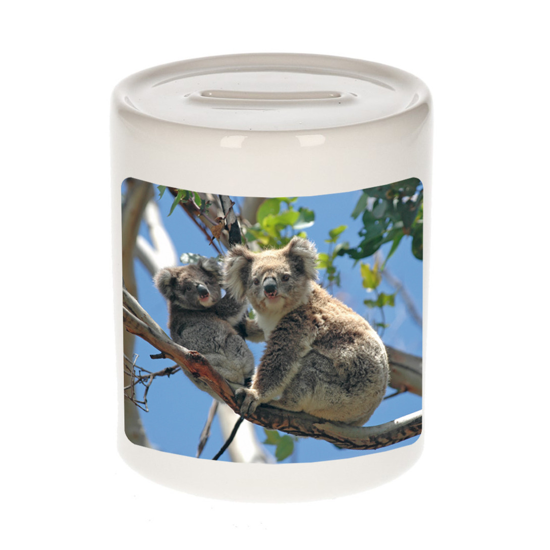 Dieren foto spaarpot koala beer wit 9 cm. Deze spaarpot is aan twee kanten bedrukt met een mooie koala beer foto. Een musthave voor een echte dieren/ koalaberen liefhebber of iemand die alles van koalaberen spaart. Erg leuk om cadeau te doen aan een echte koalaberen fan!