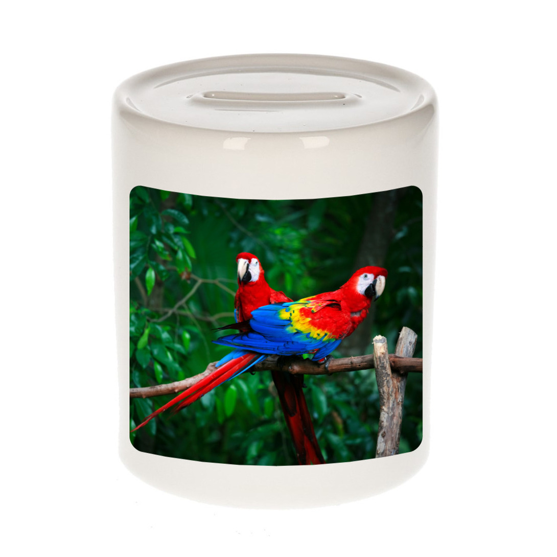 Dieren foto spaarpot papegaai wit 9 cm. Deze spaarpot is aan twee kanten bedrukt met een mooie papegaai foto. Een musthave voor een echte dieren/ papegaaien liefhebber of iemand die alles van papegaaien spaart. Erg leuk om cadeau te doen aan een echte papegaaien fan!