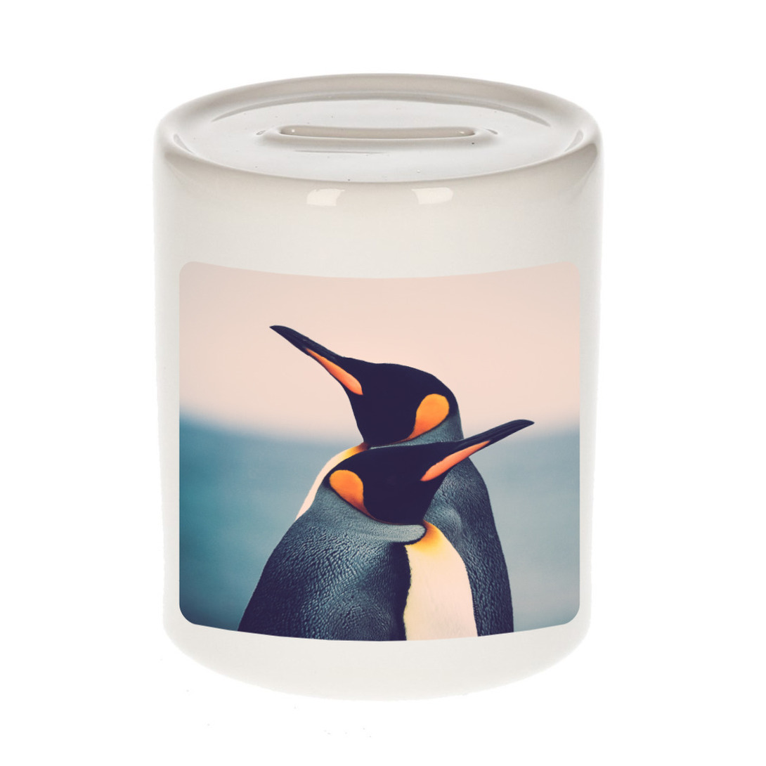 Dieren foto spaarpot pinguin wit 9 cm. Deze spaarpot is aan twee kanten bedrukt met een mooie pinguin foto. Een musthave voor een echte dieren/ pinguins liefhebber of iemand die alles van pinguins spaart. Erg leuk om cadeau te doen aan een echte pinguins fan!