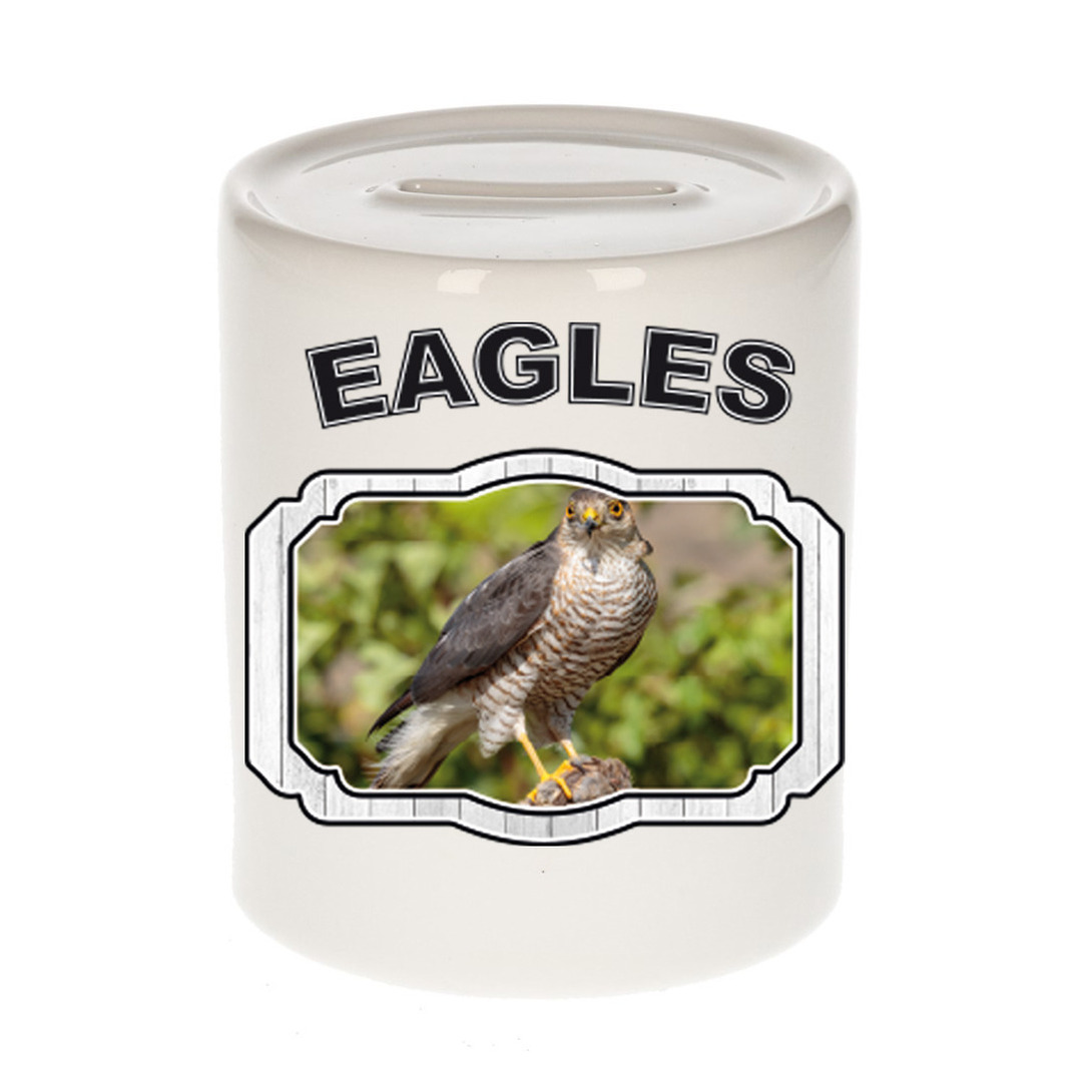 Dieren havik roofvogel spaarpot – hawks spaarpot jongens en meisjes 9 cm. Deze witte spaarpot is tweezijdig bedrukt met een roofvolgel afbeelding en de tekst: hawks. Een musthave voor een echte dieren/ roofvolgel liefhebber of iemand die alles van roofvolgel spaart. Erg leuk om cadeau te doen aan een echte roofvolgel fan!