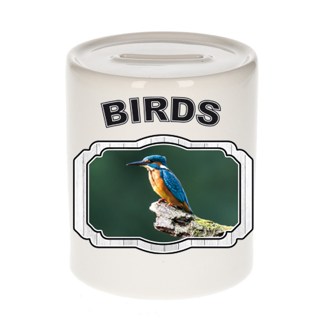 Dieren ijsvogel zittend spaarpot – birds spaarpot jongens en meisjes 9 cm. Deze witte spaarpot is tweezijdig bedrukt met een vogels afbeelding en de tekst: birds. Een musthave voor een echte dieren/ vogels liefhebber of iemand die alles van vogels spaart. Erg leuk om cadeau te doen aan een echte vogels fan!