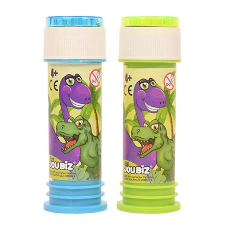 1x dinosaurus bellenblaas flesjes met bal puzzel/spelletje 60 ml voor kinderen. Bellenblaasflesje met opdruk van dinosaurussen, met een bal spelletje in de dop. U ontvangt een willekeurige kleur/opdruk, dit kunnen dezelfde zijn maar ook verschillende. Materiaal flesje: kunststof. Inhoud: ca. 60 ml. Uitdeel/grabbelton speelgoed voor o.a. kinderfeestjes.