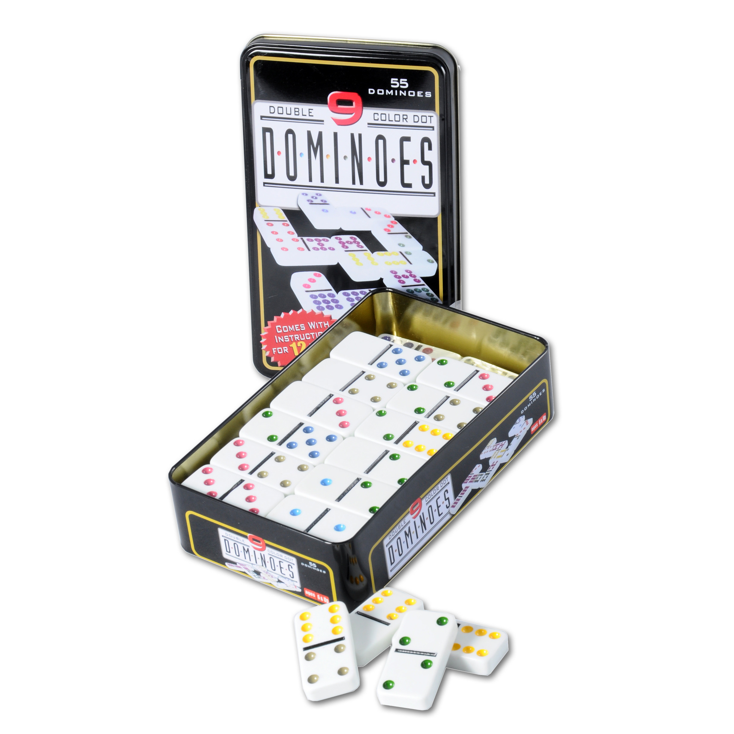Domino spel dubbel/double 9 in blik 55 stenen. Geniet van urenlang speelplezier met dit Double 9 dominospel in blik! De set bevat 55 gekleurde dominostenen, netjes verpakt in een stevig metalen bewaarblik. Elke steen heeft gekleurde ogen, wat het spel extra aantrekkelijk maakt voor zowel kinderen als volwassenen. Dankzij het handige opbergblik is het spel eenvoudig mee te nemen en netjes op te bergen.