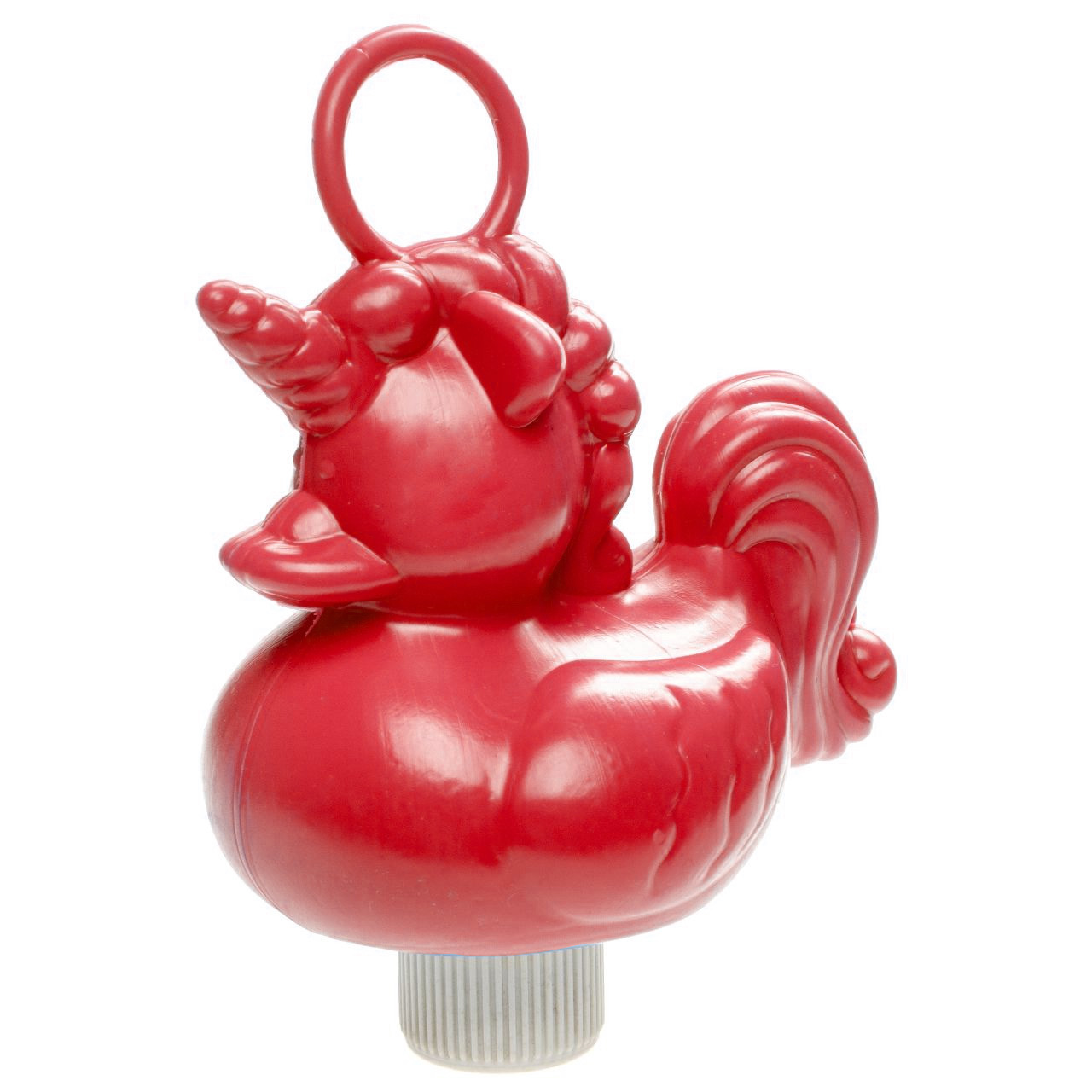 Eenhoorn badeendje badspeelgoed in het rood van 12 cm. Een badeendje met een eenhoorn en een oogje op zijn rug waardoor je dit eendje ook kan gebruiken voor het leuke hengelspel. Dit eendje zorgt voor veel plezier in bad of maak er een wedstrijdje van met het hengelspel. Ook gewoon leuk als uitdeelcadeautje voor op een kinderfeestje. Afmeting: 12 x 5 x 6 cm. Materiaal: zacht kunststof.