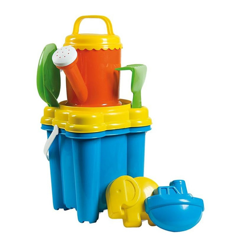 7-delige vrolijke kleuren emmerset in de vorm van een kasteel. Deze leuke emmerset is handig om mee te nemen naar het strand of om te gebruiken in de zandbak. De emmer is in de vorm van een kasteel waardoor een zandkasteel zo gemaakt is. De emmerset is inclusief gieter, schep, zeef, hark en twee vormpjes. kleurensamenstelling kan iets afwijken.