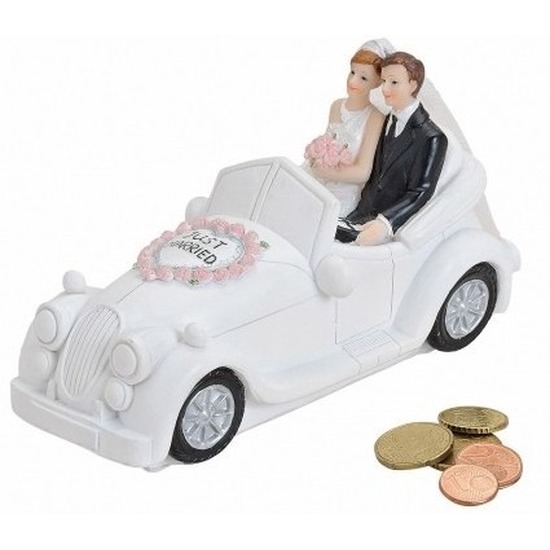 Just married trouwauto spaarpot bruiloft artikelen 16 cm. Deze charmante trouwauto spaarpot van G. Wurm is het perfecte cadeau voor een huwelijk of bruiloftsfeest. De gedetailleerd vormgegeven oldtimer met het opschrift “Just Married” straalt romantiek en nostalgie uit. Een prachtige herinnering aan de grote dag ?n een originele manier om te sparen voor de huwelijksreis of toekomstplannen.