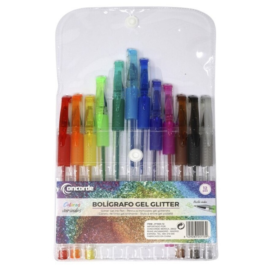 Glitterpennen voor kinderen. 12x stuks neon en metallic gekleurde gel pennen. Deze gelpennen zijn ideaal voor tekenen, versieren en schrijven. Zowel op licht als donker papier.