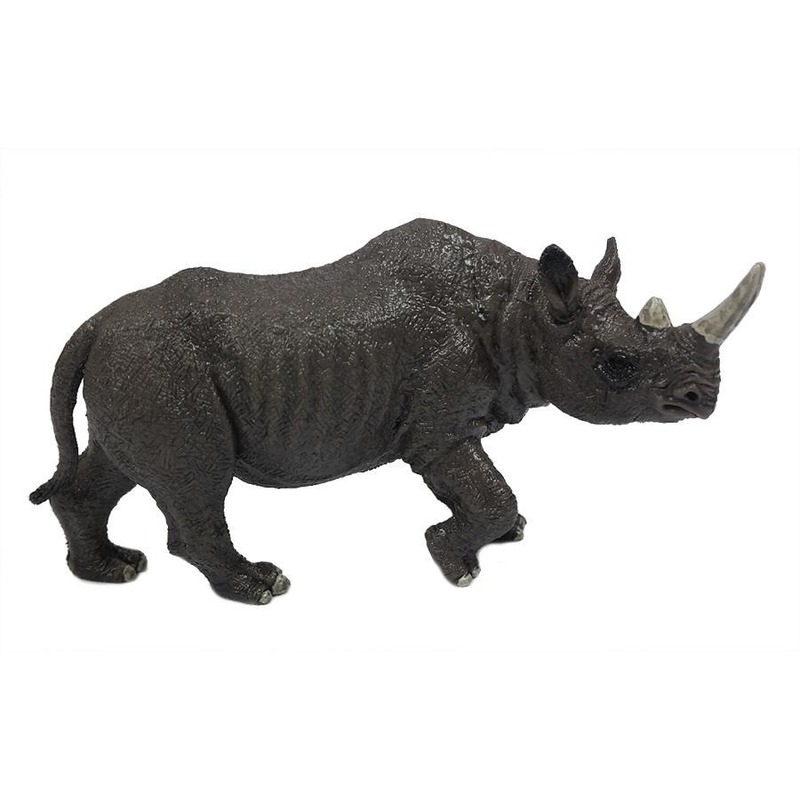 Een grijze speelgoed neushoorn met een lengte van ca. 12 cm. Materiaal: plastic.