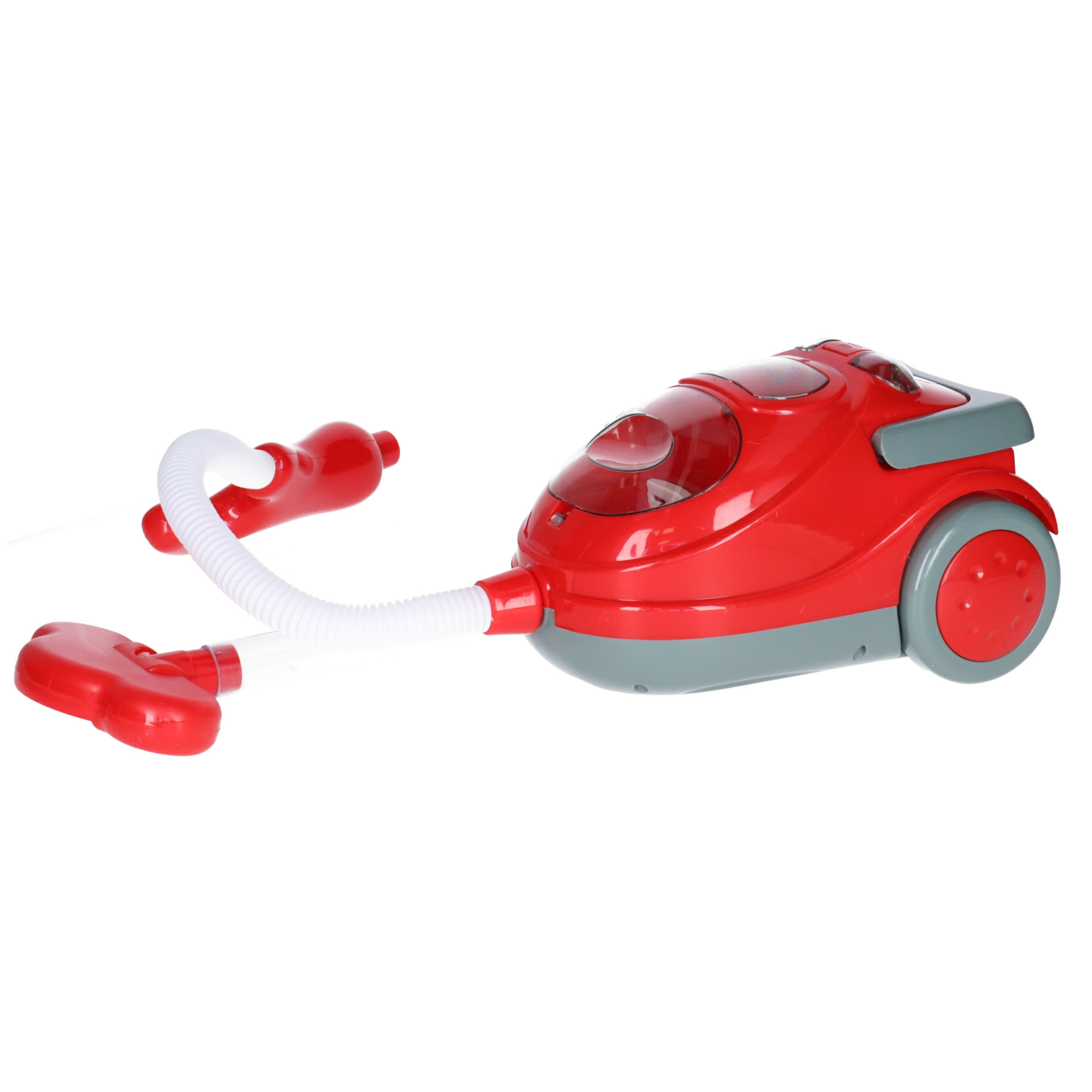 Speelgoed stofzuiger met licht/geluid 19 x 14 cm voor kinderen. Kleine wit met rode speelgoed stofzuiger met licht en geluid. Het stofcompartiment kan geopend worden en de stang is verstelbaar in hoogte, waardoor het stofzuigertje gemakkelijk aan te passen is aan de lengte van uw kind. U ontvangt nep stof (piepschuim balletjes), wat uw kindje kan opzuigen.