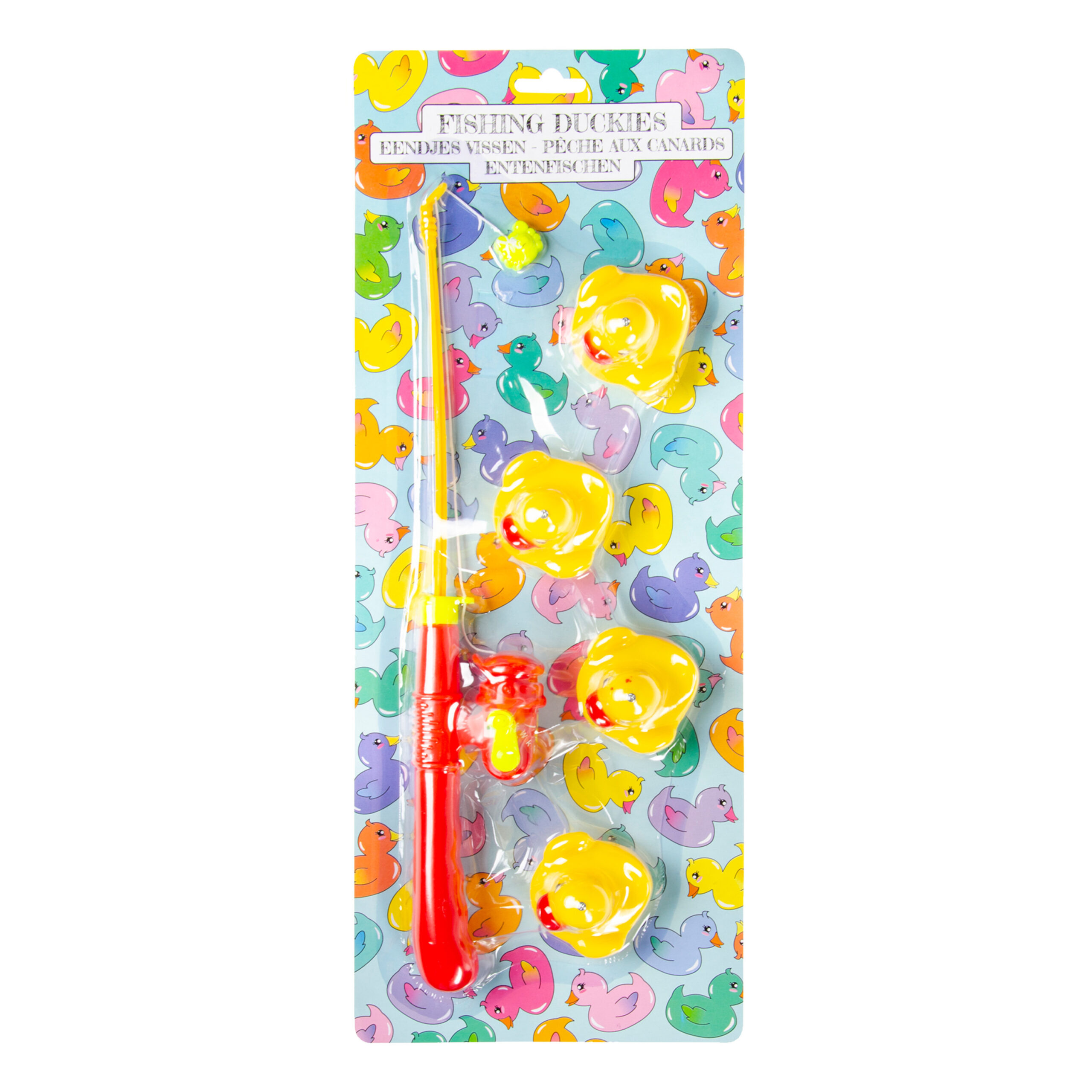 Hengelspel/eendjes vangen spel voor kinderen in de kleur rood. Het leukste kermis spel voor kinderen om thuis te spelen. Net als op de kermis probeer je alle eendjes uit een bak water te vissen. Het spel is ook leuk om mee te spelen in bad, buiten in de vijver of in het zwembad. De set bestaat uit 1 hengel en 4 eendjes. Materiaal: kunststof. Pakket grootte: L17 x H43,5 cm.?