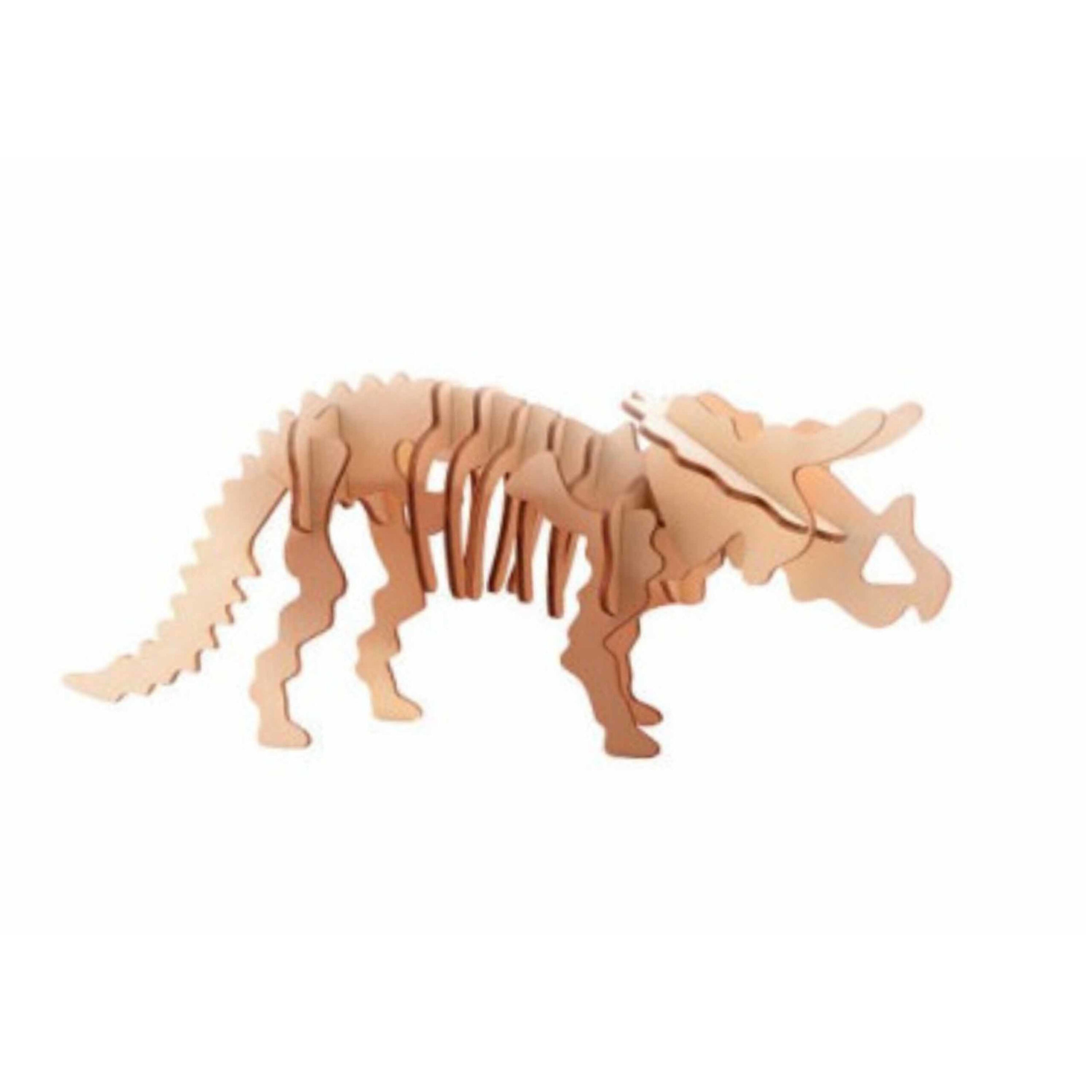 Houten 3D puzzel dinosaurus Triceratops 21 cm. Houten dinosaurus 3D puzzel om zelf in elkaar te zetten, met instucties. Materiaal: licht hout (triplex). Afmetingen: ongeveer 21 cm. Niet geschikt voor kinderen onder de 3 jaar. 3D dino bouwspeelgoed.
