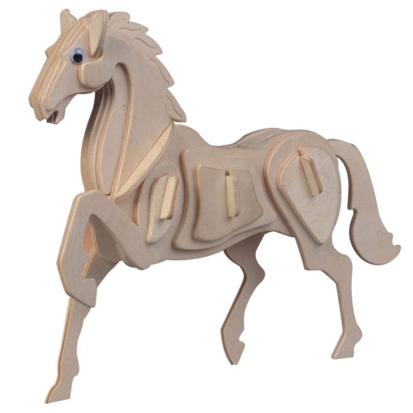 Houten 3D puzzel dieren bouwpakket. Houten Paard 3D puzzel om zelf in elkaar te zetten, met instructies. Materiaal: licht hout (triplex). Afmetingen in elkaar gezet: ongeveer 20 cm. Aantal stukjes: 32. Niet geschikt voor kinderen onder de 3 jaar. 3D dieren bouwspeelgoed.